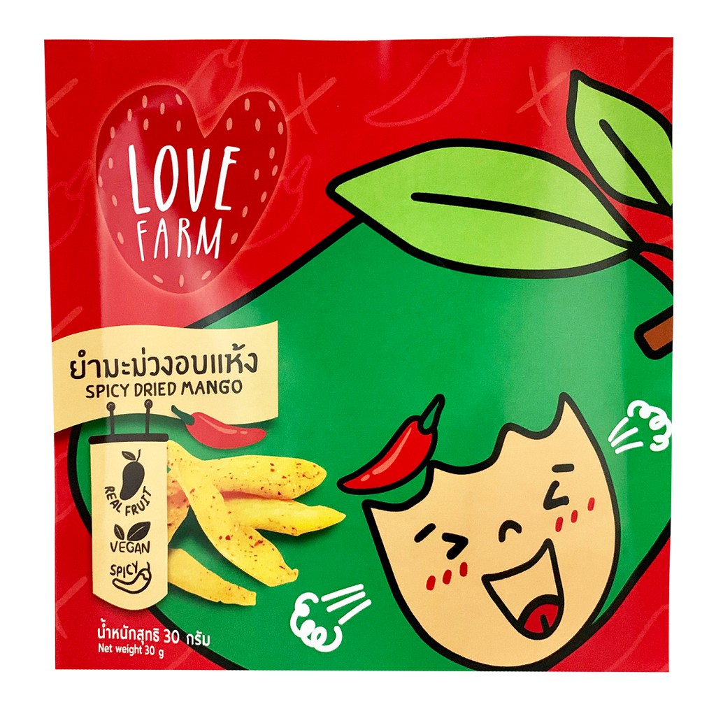 🥭(ยำมะม่วงอบแห้ง แซ่บๆยั่วๆ 30 กรัม) 💖เลิฟฟาร์ม (LOVEFARM) ยำ มะม่วง ของแซ่บ ผลไม้อบแห้ง