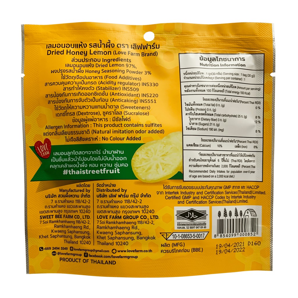 🍋🍯(เลมอนอบแห้ง รสน้ำผึ้ง 30 กรัม) 💖เลิฟฟาร์ม (LOVEFARM) เลมอน พริกเกลือ ผลไม้อบแห้ง
