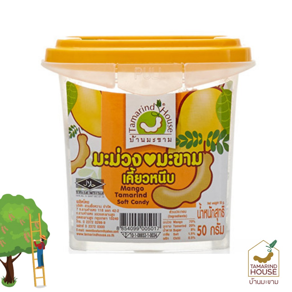บ้านมะขาม - มะม่วงผสมมะขามเคี้ยวหนึบ 50 กรัม ผลไม้เคี้ยวหนึบ