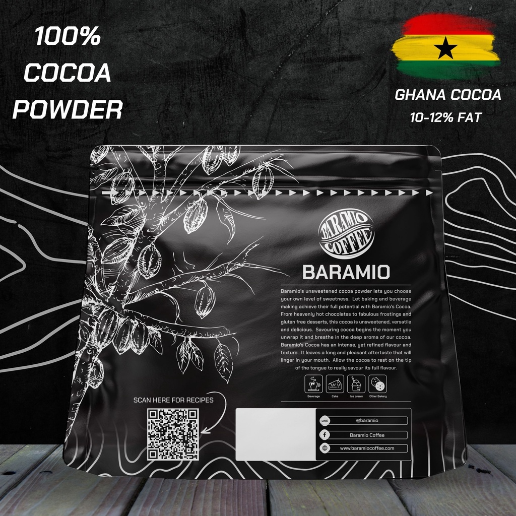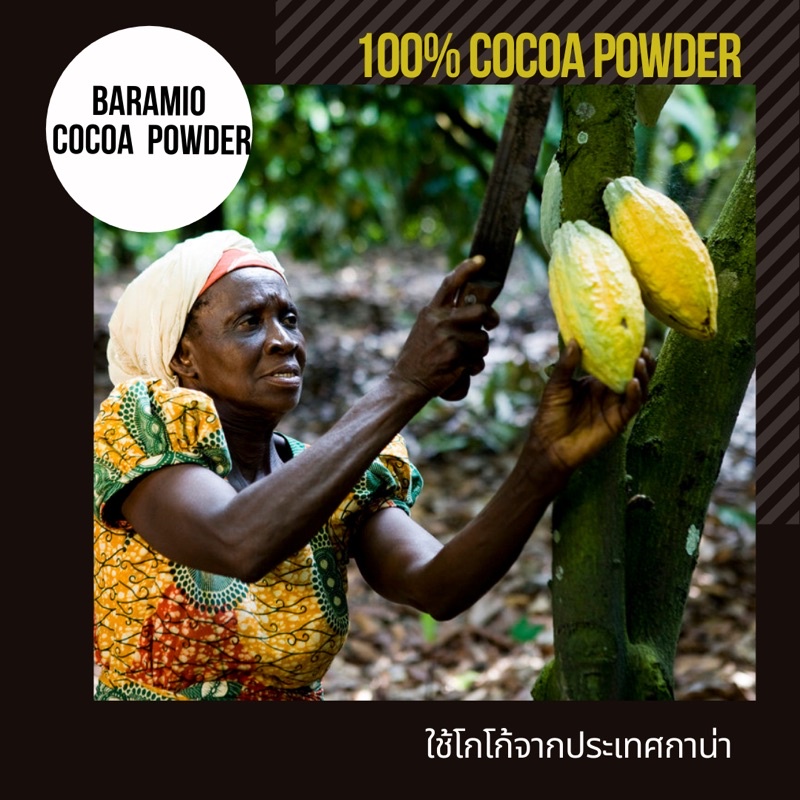 Baramio ผงโกโก้กาน่าแท้100% ชนิดสีเข้ม คีโตทานได้ ถุง 500 กรัม ชงได้ 50 แก้ว