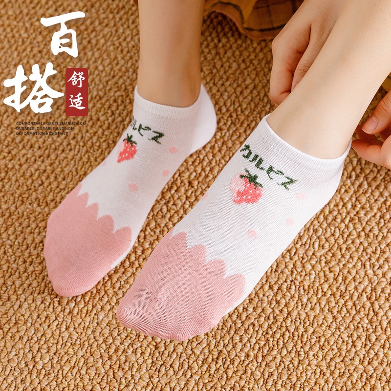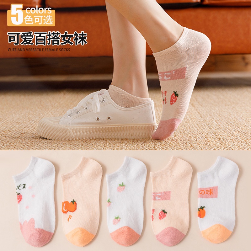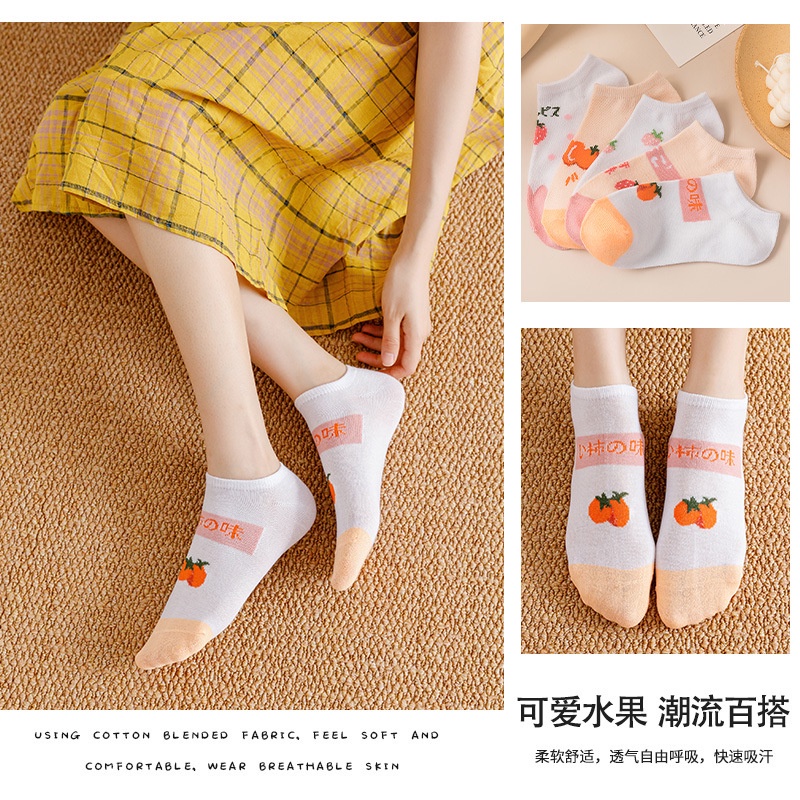 ถุงเท้าข้อสั้น พิมพ์ลายผลไม้น่ารัก แฟชั่นสำหรับผู้หญิงและผู้ชาย