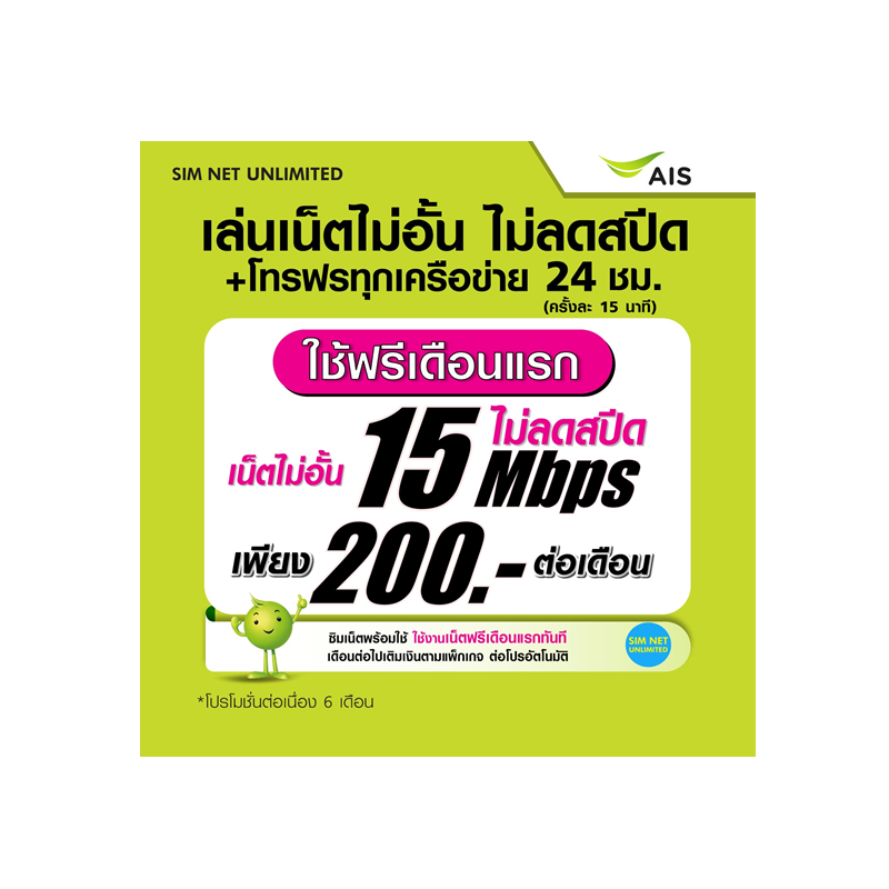 (เล่นฟรีเดือนแรก) ซิมเทพเล่นเน็ตไม่อั้น ความเร็ว 15Mbps +โทรฟรีทุกค่าย (พร้อมใช้ฟรี wifi ทุกแพ็กเกจ)