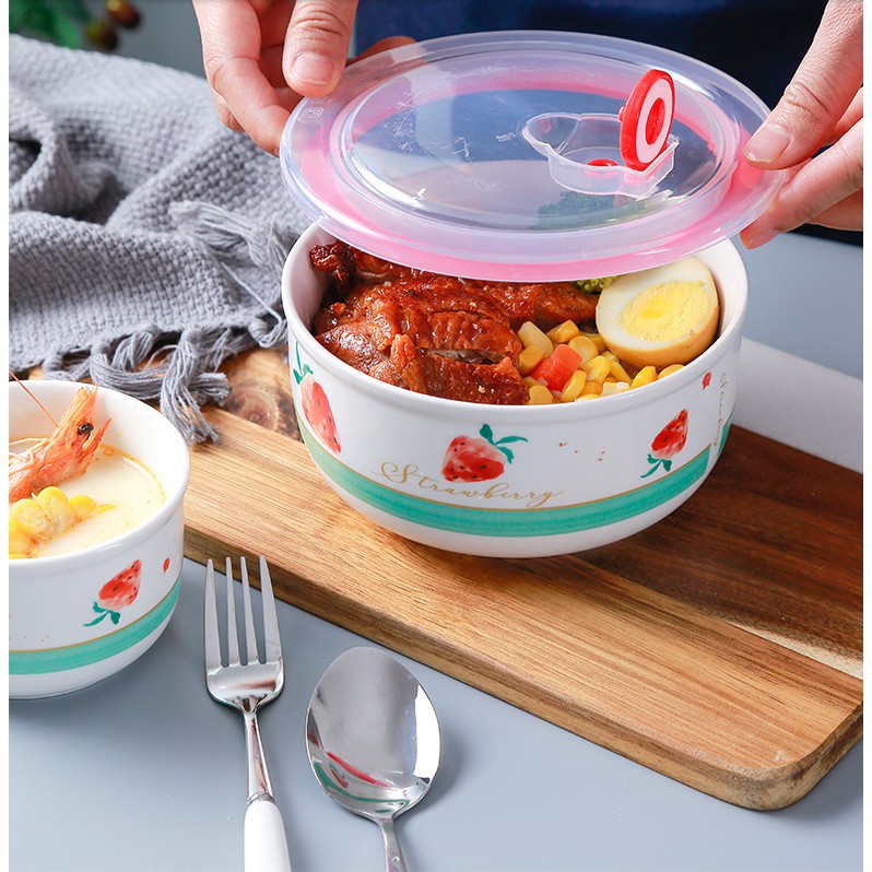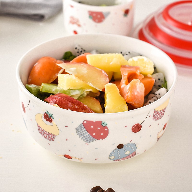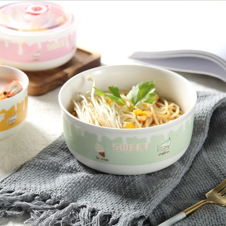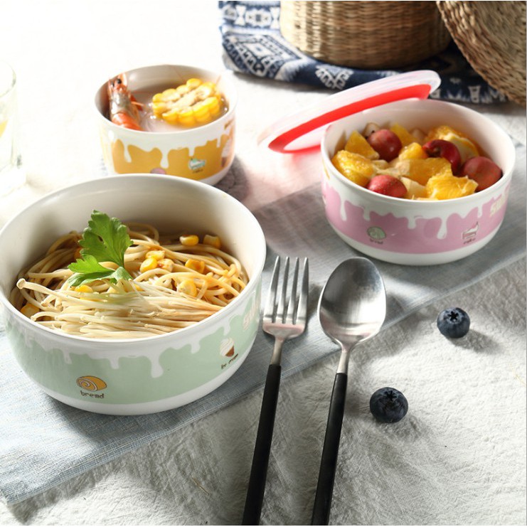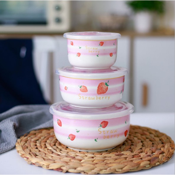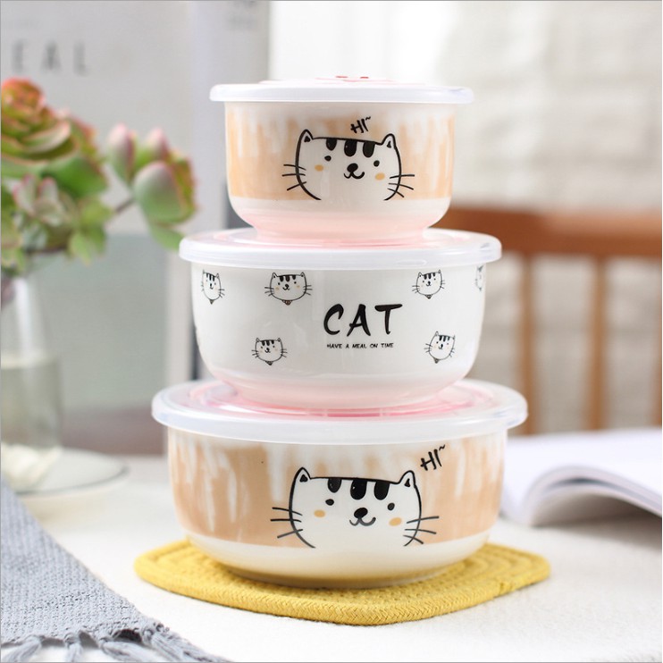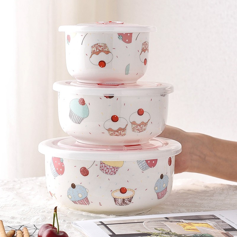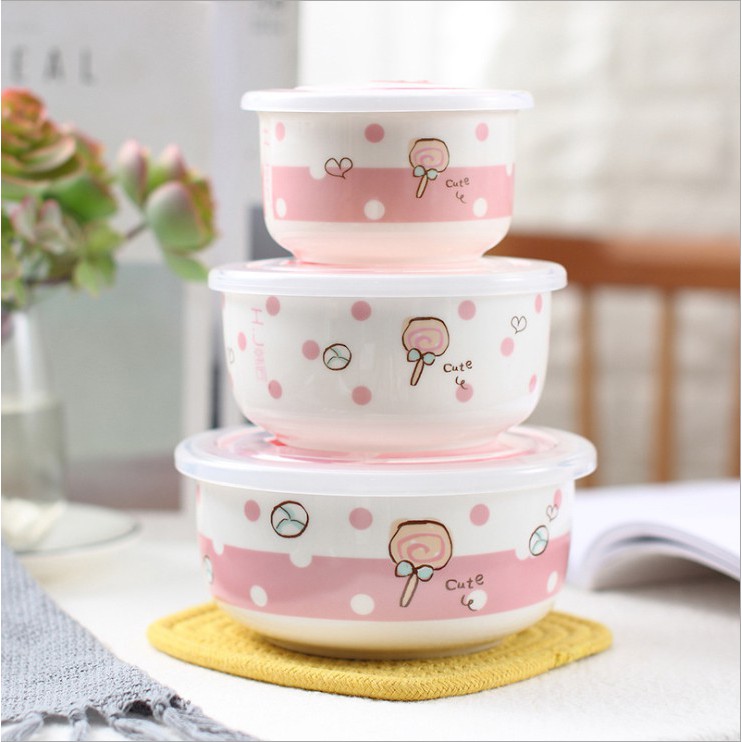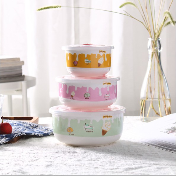 ชุดชามเซรามิค ชามเซรามิค เซรามิค พร้อมฝาปิด 3ใบ/ชุด เข้าไมโครเวฟได้