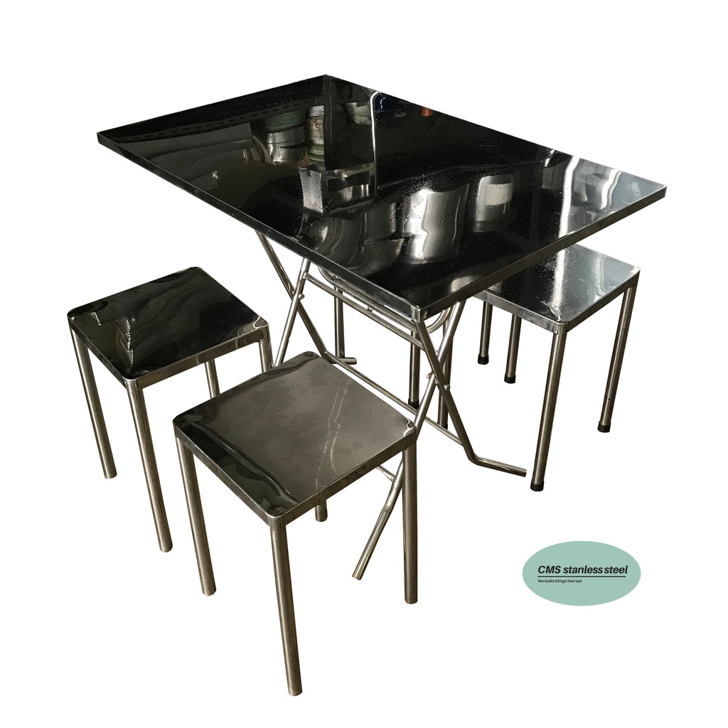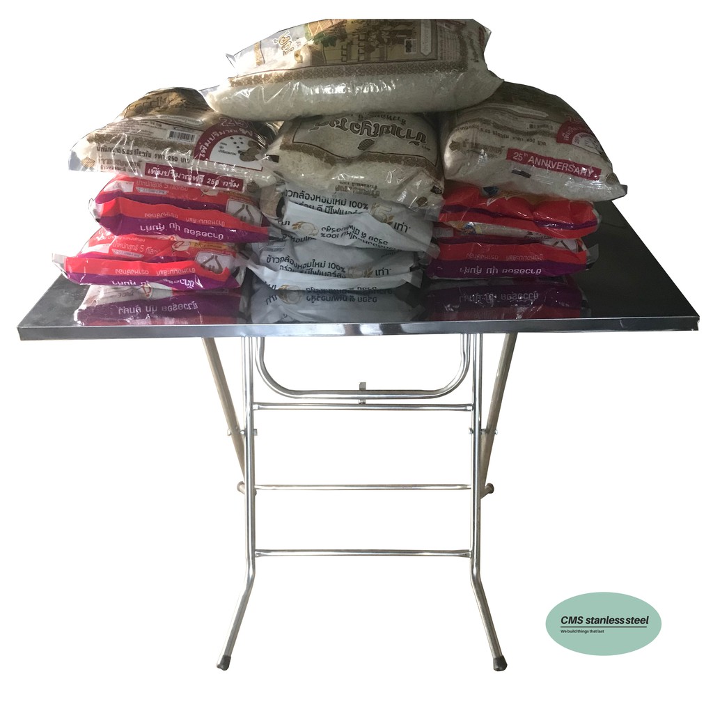 CMS โต๊ะพับสแตนเลส ขนาด 3 ฟุต. ขาเป็นท่อสแตนเลสกลมเส้นผ่านศูนย์กลาง 2 ซม. ความหนา 1 มม.