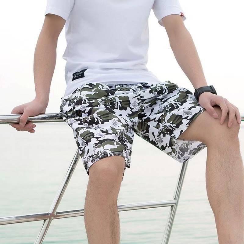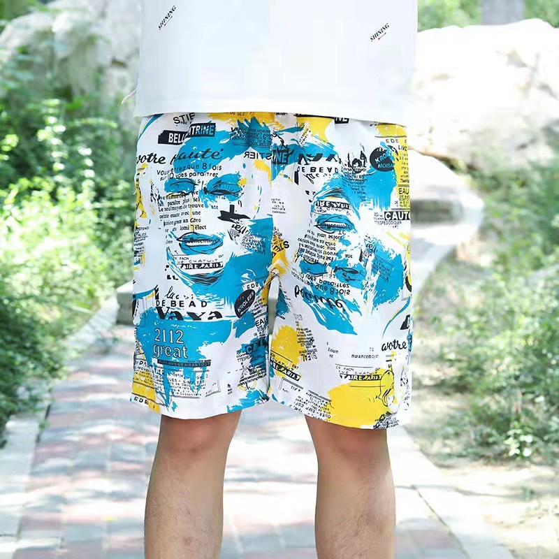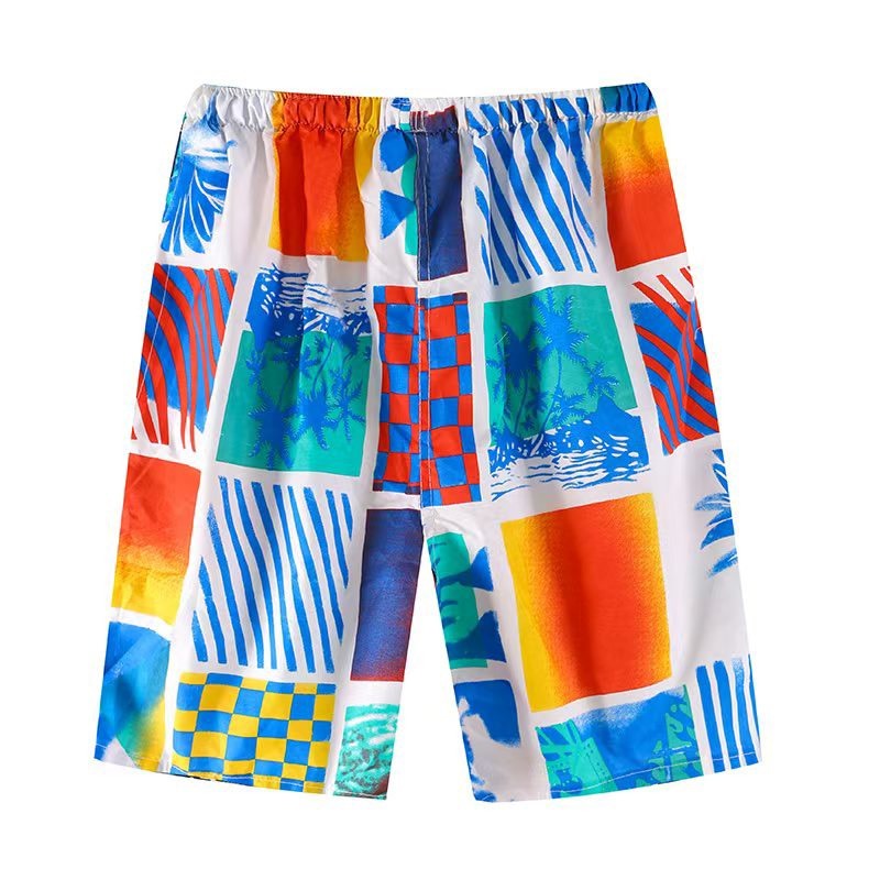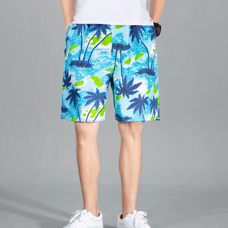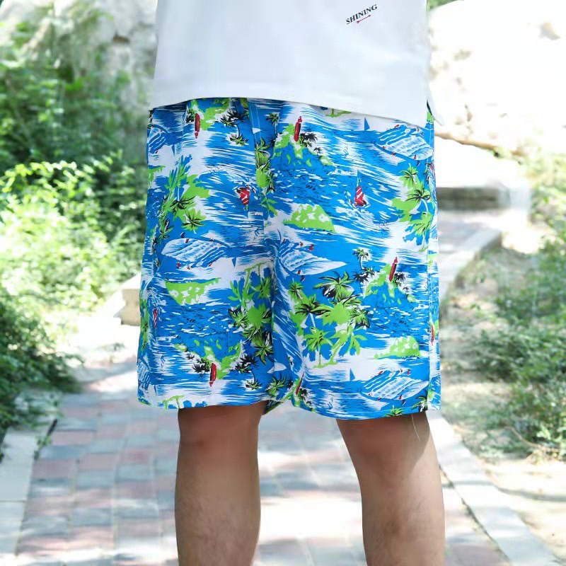 กางเกงขาสั้นลำลอง กางเกงชายหาด กางเกงลายดอก เอวยางยืดมีเชือกผูก