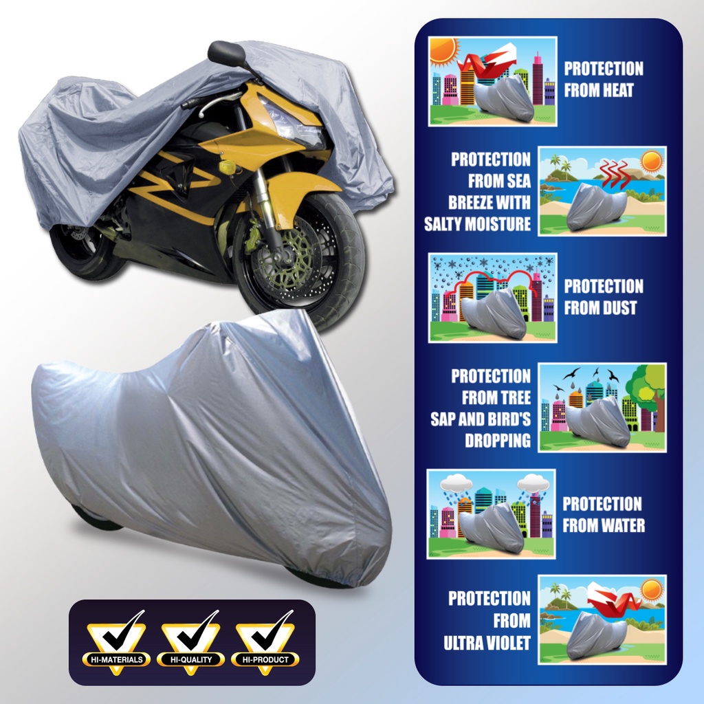 ผ้าคลุมรถมอไซค์ ผ้าคลุมรถจักรยานยนต์ อย่างดีหนาพิเศษ ของแท้ ป้องกันแดด ป้องกันฝน ป้องกันฝุ่น PVC แถมฟรีกระเป๋า