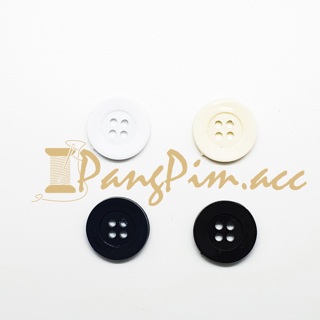 กระดุมพลาสติก 20 มิล กระดุมเสื้อผ้า (สีดำ ขาว กรม) มีขอบ กระดุม 20 มิล 4 รู แบ่งขาย 10เม็ด 20เม็ด