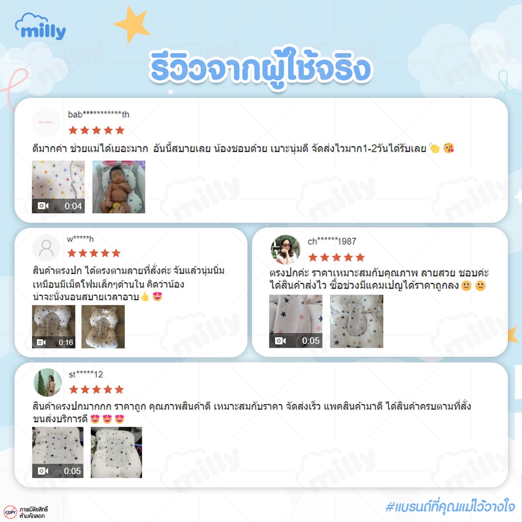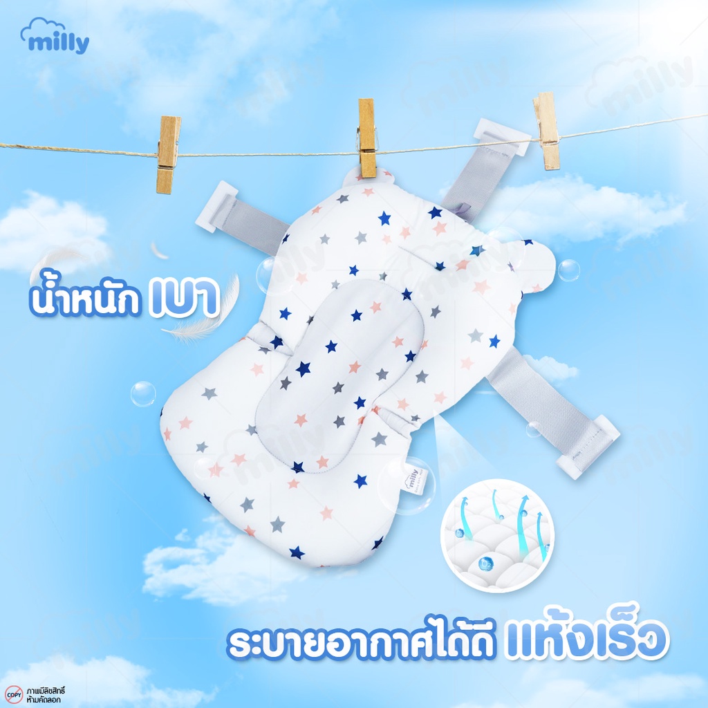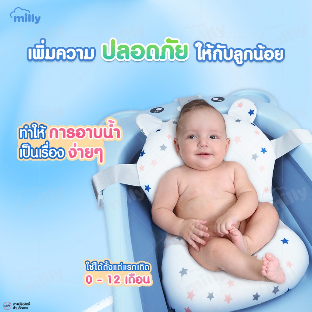 Milly เบาะรองอาบน้ำ สำหรับเด็กทา รก ใช้ได้ตั้งแต่แรกเกิด วัสดุโฟม แห้งเร็ว Baby Bath Cushion