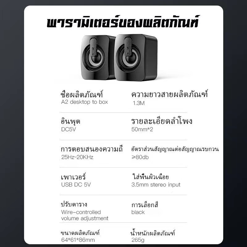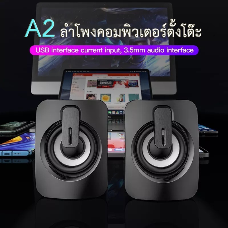 ลำโพงคอม ลําโพงคอมพิวเตอร์ speaker ลําโพงสเตอริโอ ลำโพงตั้งโต๊ะ สําหรับคอมพิวเตอร์ตั้งโต๊ะ รุ่น A2