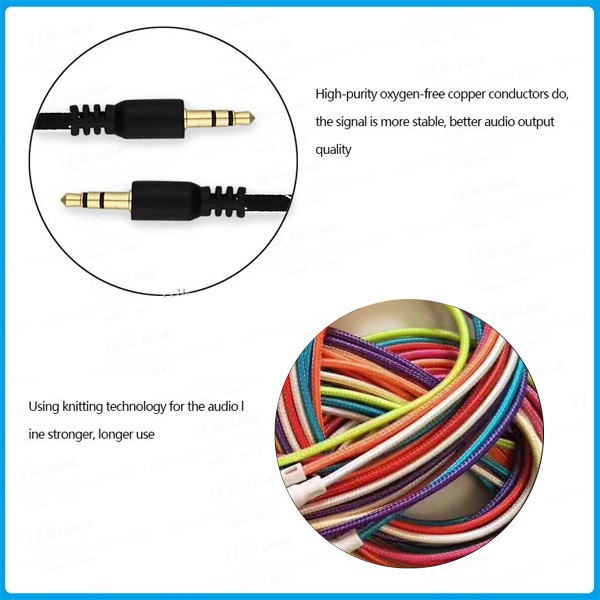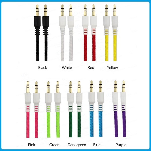 สายเคเบิ้ล AUX /หัว 3.5mm 1เมตร /สายเชือกถักหัวขาว คละสี รองรับกับลำโพง