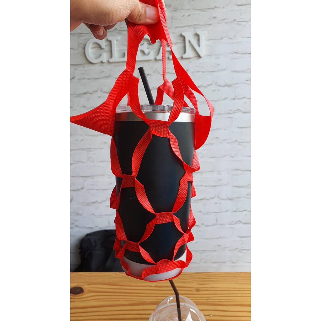 [โค้ดหน้าร้าน99ลด25 + โค้ดส่งฟรีหน้าร้าน] ถุงผ้าใส่แก้ว ถุงผ้าแก้วกาแฟ ชา ถุงลดโลกร้อน 100 ใบ ถุงตาข่ายใส่แก้วกาแฟ