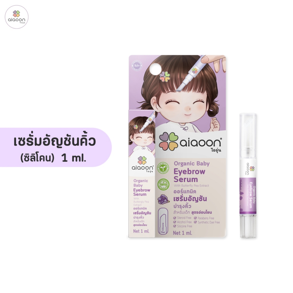 ไออุ่น เซรั่มอัญชันบำรุงคิ้ว 1ml. (aiaoon Organic Baby Eyebrow Serum) อ่อนโยน สำหรับเด็ก