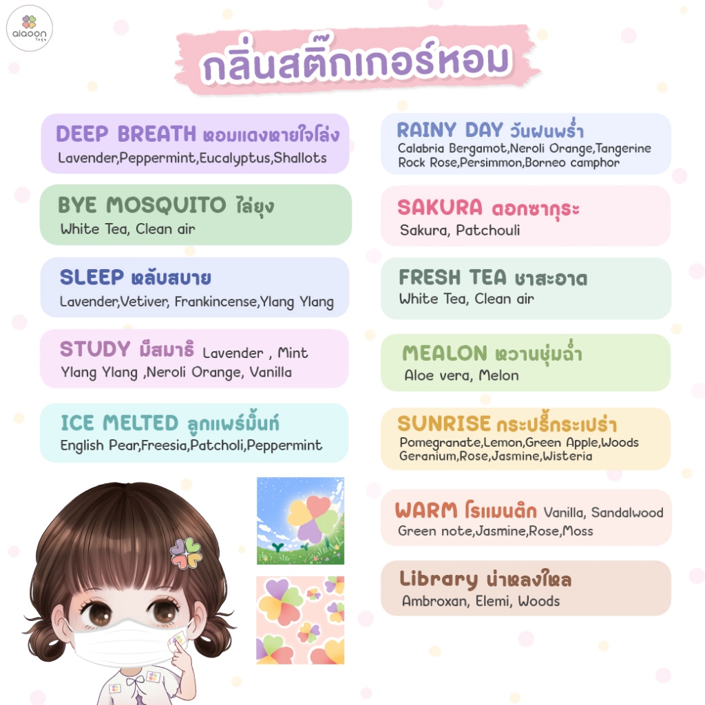 ไออุ่น สติ๊กเกอร์หอม สติ๊กเกอร์แปะแมสก์ เสื้อผ้า aiaoon Aroma Oil Sticker