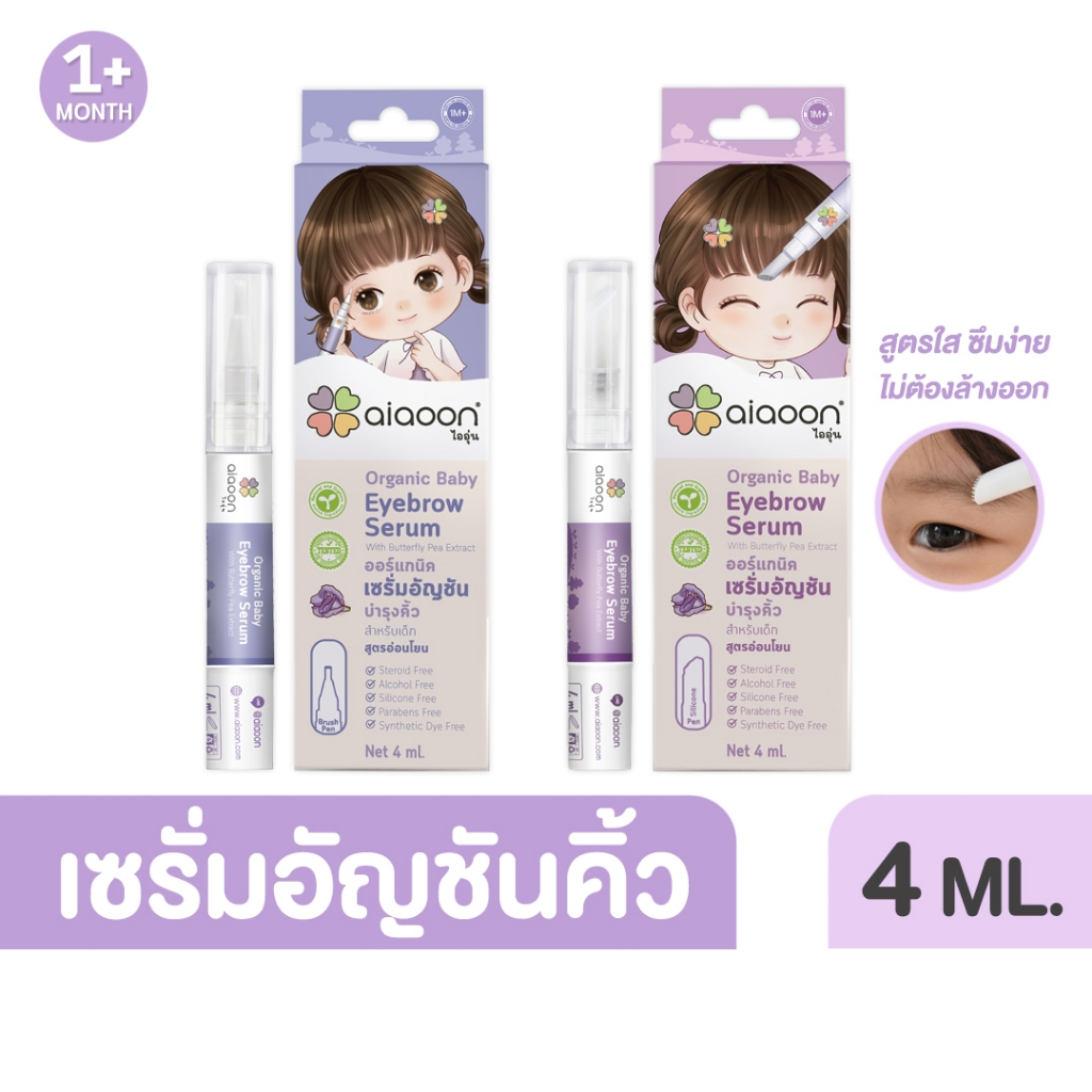 ไออุ่น เซรั่มอัญชันคิ้วสำหรับเด็ก 4 ml. (ใหญ่) (aiaoon Organic Baby Eyebrow Serum)