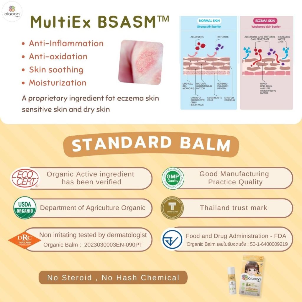 ไออุ่น บาล์มบัวหิมะออร์แกนิค 15 g.(aiaoon Organic Soothing Balm with Snow Lotus Extract)
