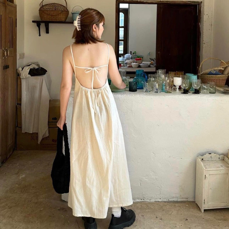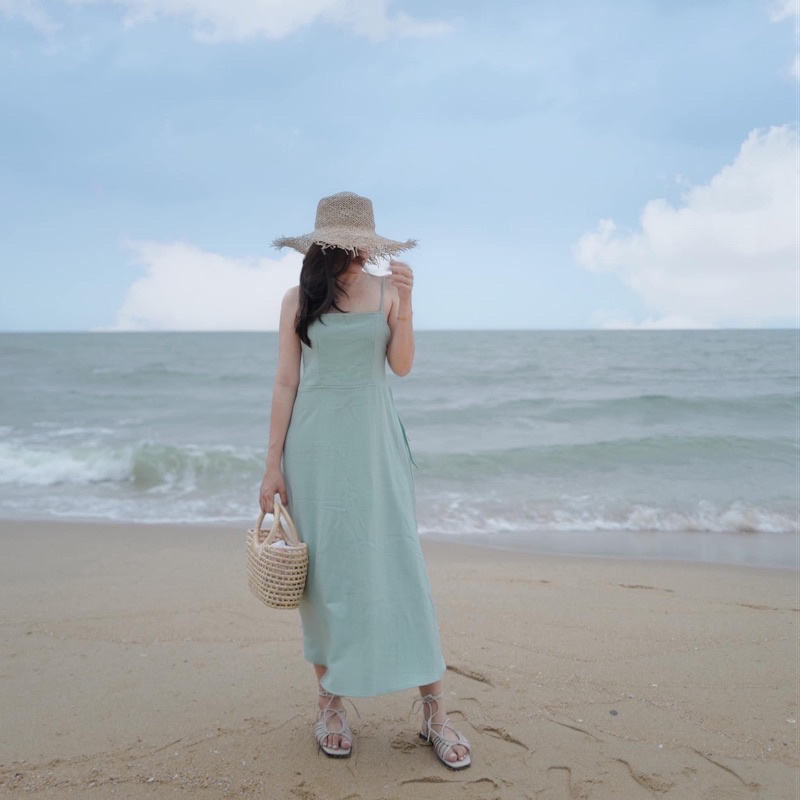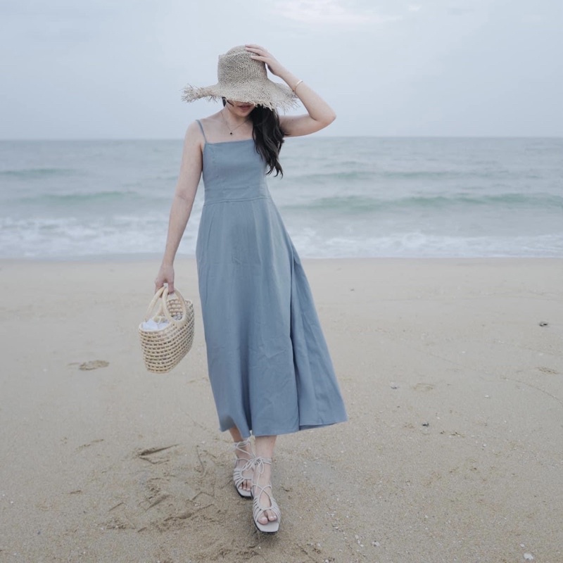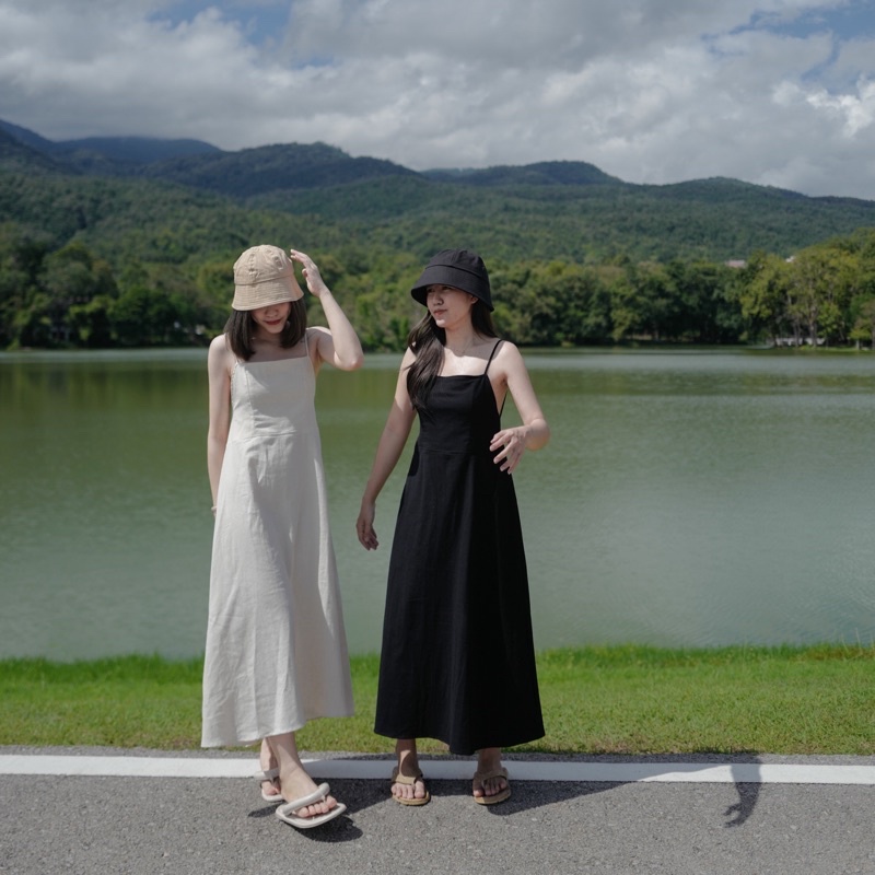 ชุดเดรส D R E S S S U N N Y (ถ่ายจากสินค้าจริง) เดรสโชว์หลัง เดรสทะเล (โรงงานผ้าที่ไทยร้านผลิตเอง)