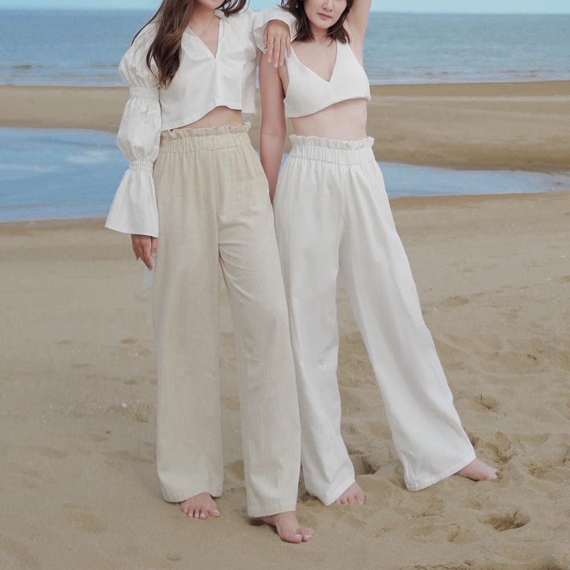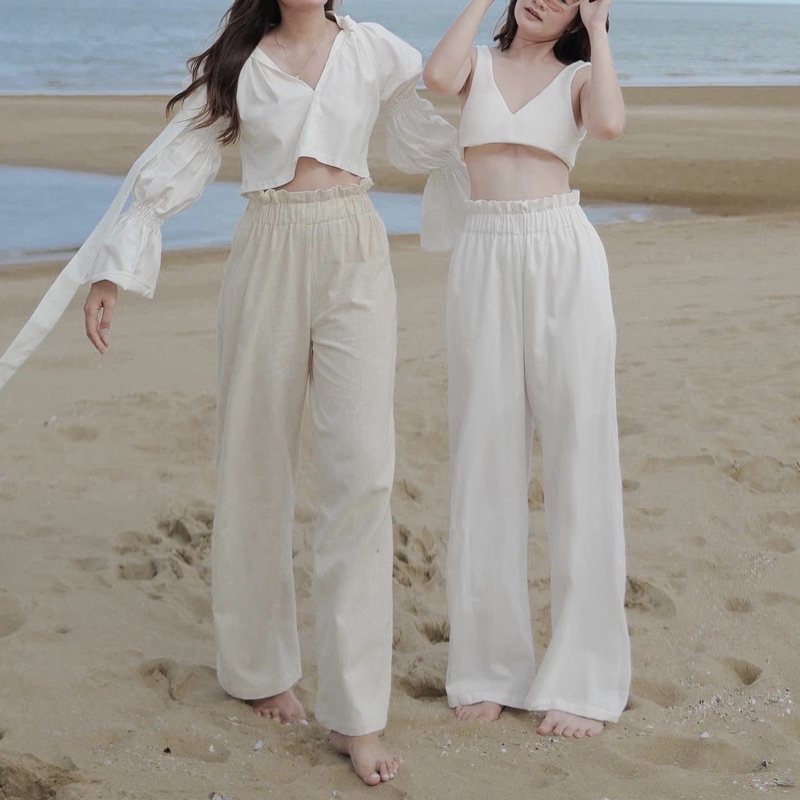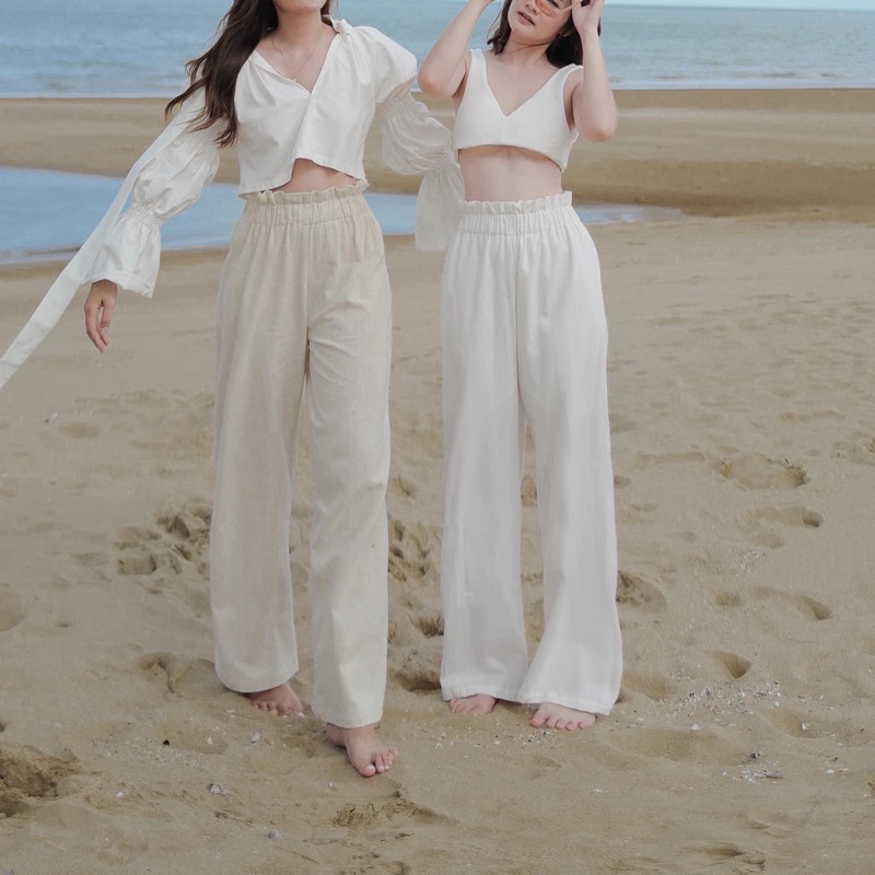 กางเกงมินิมอล YAIMAIPANTS (ถ่ายจากสินค้าจริง) กางเกงทะเล กางเกงขายาวผ้าฝ้าย (โรงงานผ้าที่ไทยร้านผลิตเอง)