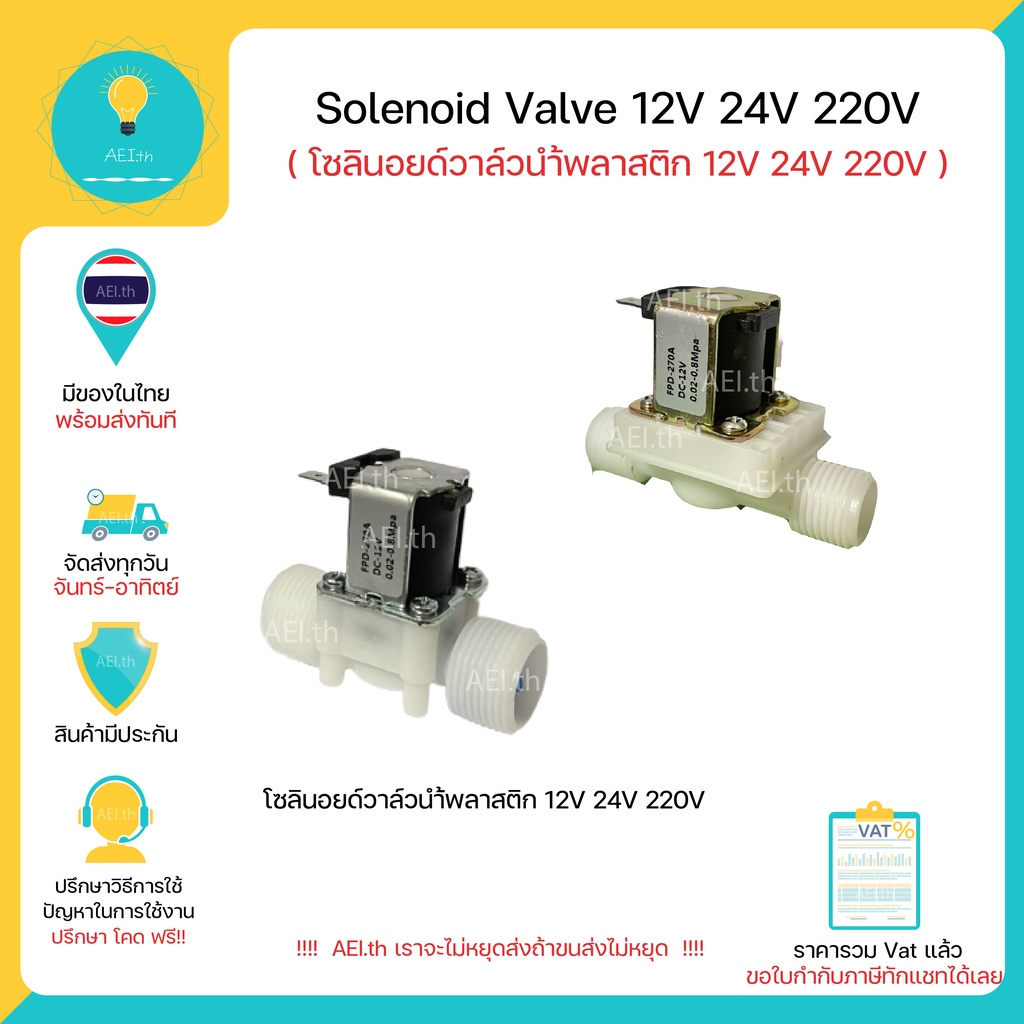 Solenoid Valve 12V 24V 220V โซลินอยด์วาล์วน้ำพลาสติก / โลหะ เกลียวนอก 1/2นิ้ว 3/4นิ้ว 4 หุน 6 หุน