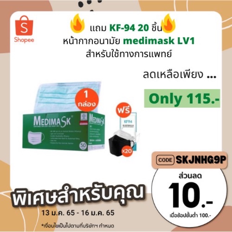 🔥Flash sale แถม KF-94 20 ชิ้น🔥 หน้ากากอนามัย medimask LV1 สำหรับใช้ทางการแพทย์