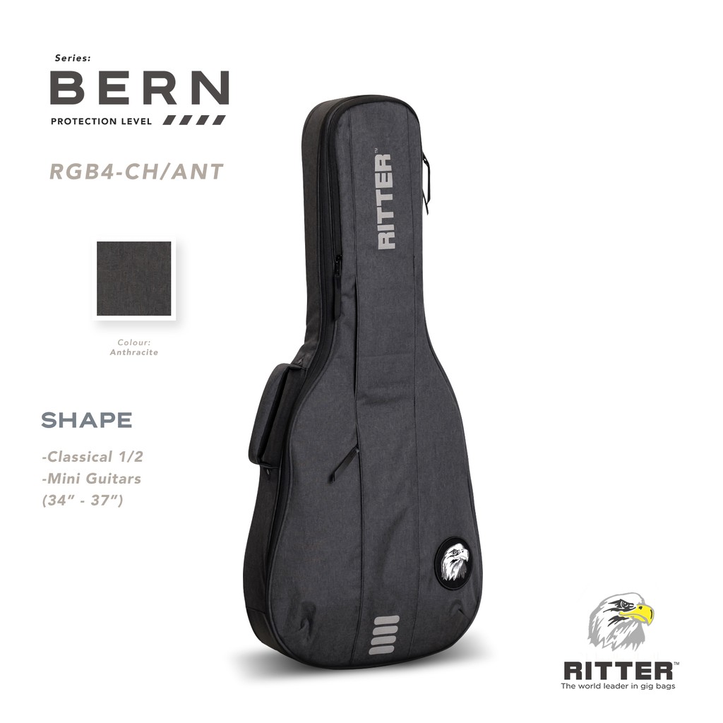Ritter BERN 4 "Anthracite" กระเป๋ากีตาร์คลาสสิค 1/2 และ กีตาร์โปร่งทรง Mini (34-37")