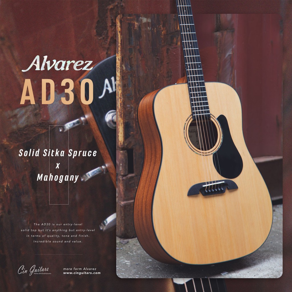 Alvarez AD30 กีตาร์โปร่ง Top Solid รุ่นประหยัด (Sitka Spruce / Mahogany)