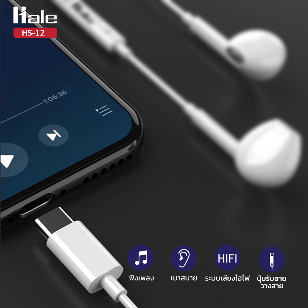Hale หูฟังพอร์ต Type-C , 3.5 MM. และ IP (ในตัวเลือก) สเตอริโอ stereo wired earphone หูฟังสายสมอร์ทอค HS-02
