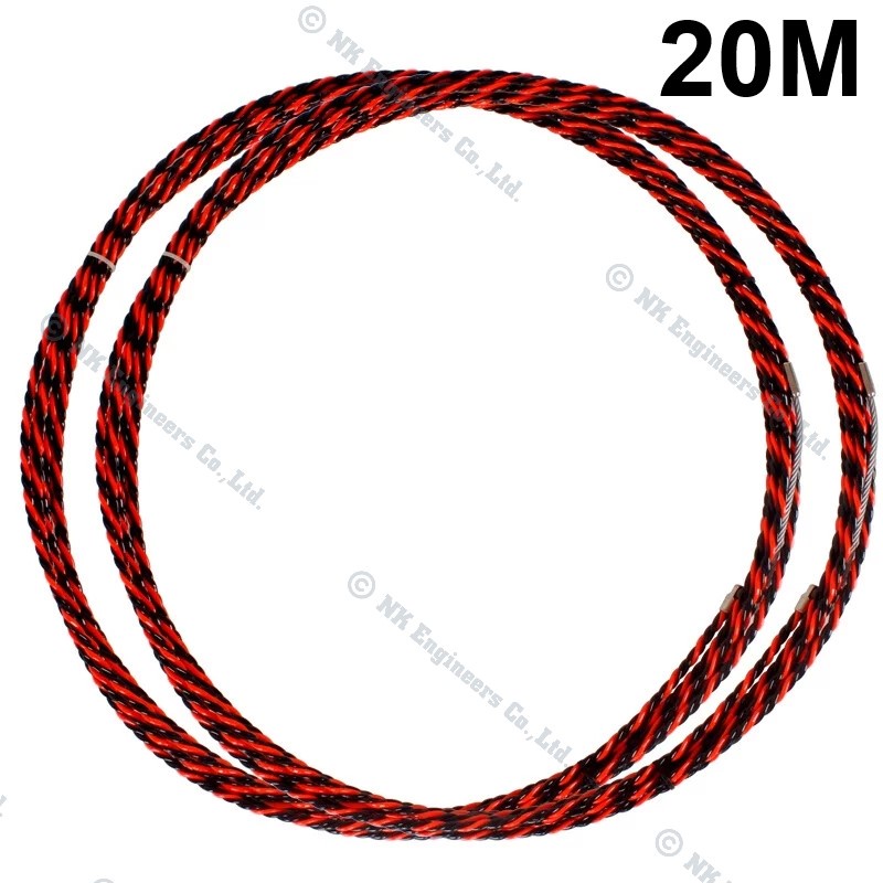 Fish Tape ฟิตเทปลวดร้อยสายไฟ วัสดุ Three Strand Steel(สีดำแดง) 10 20 30 50 M