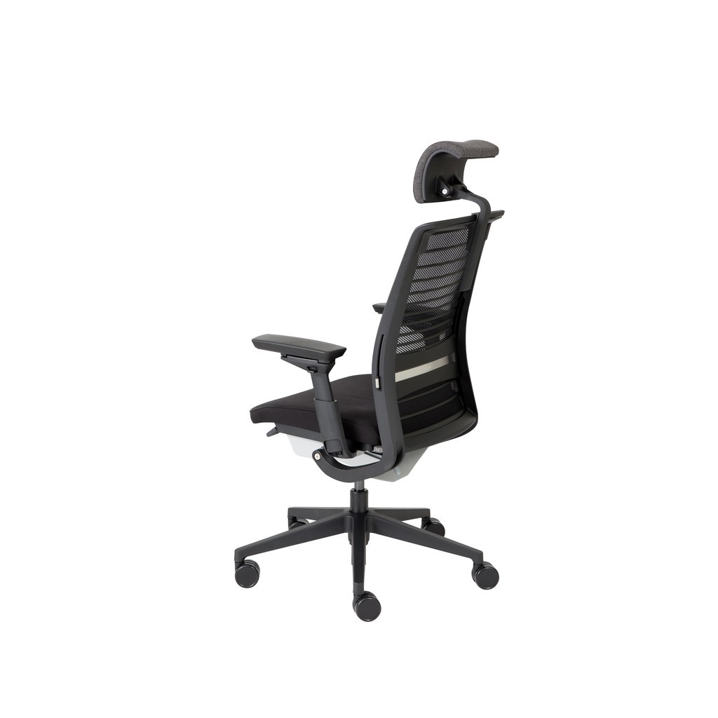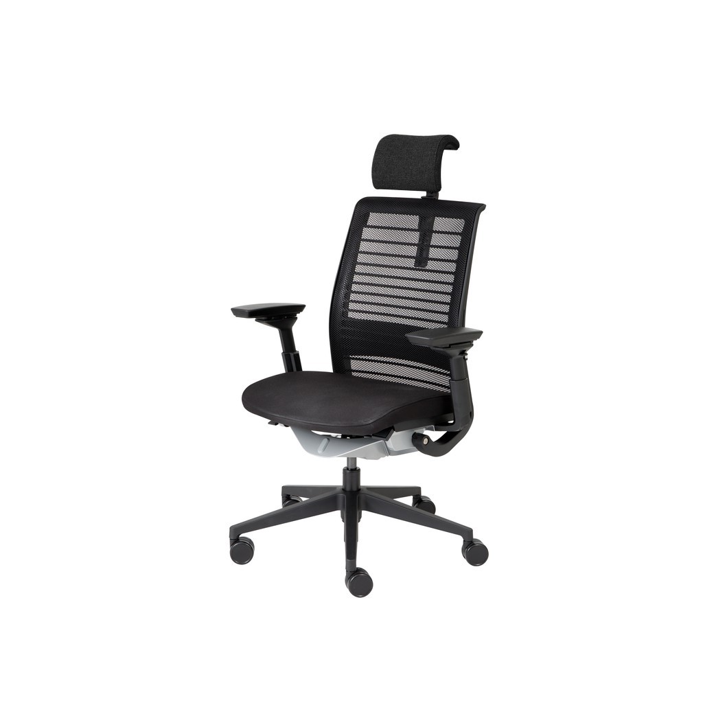 Modernform เก้าอี้เพื่อสุขภาพ Steelcase ประกัน 12 ปี รุ่น Think V2 พนักพิงศีรษะหุ้มผ้าดำ โครงสีดำ พนักตาข่ายดำ
