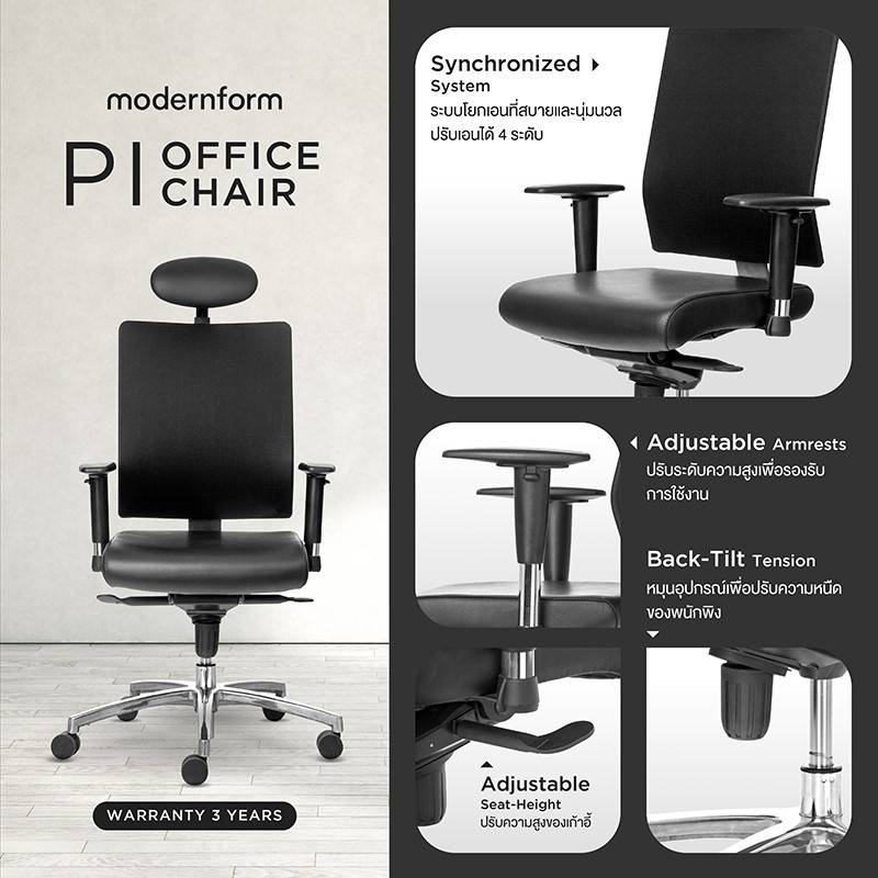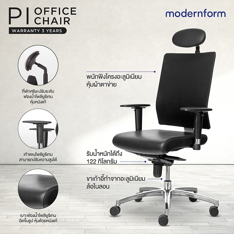 Modernform เก้าอี้สำนักงาน เก้าอี้ทำงาน รุ่น PI พนักพิงสูง สีดำ นั่งสบายด้วยระบบโยกซิงโครไนซ์