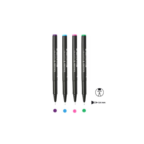Schneider ปากกาหัวเข็ม ชไนเดอร์ ชุด 4 ด้าม (สีม่วง,ฟ้า,ชมพู,เขียว)