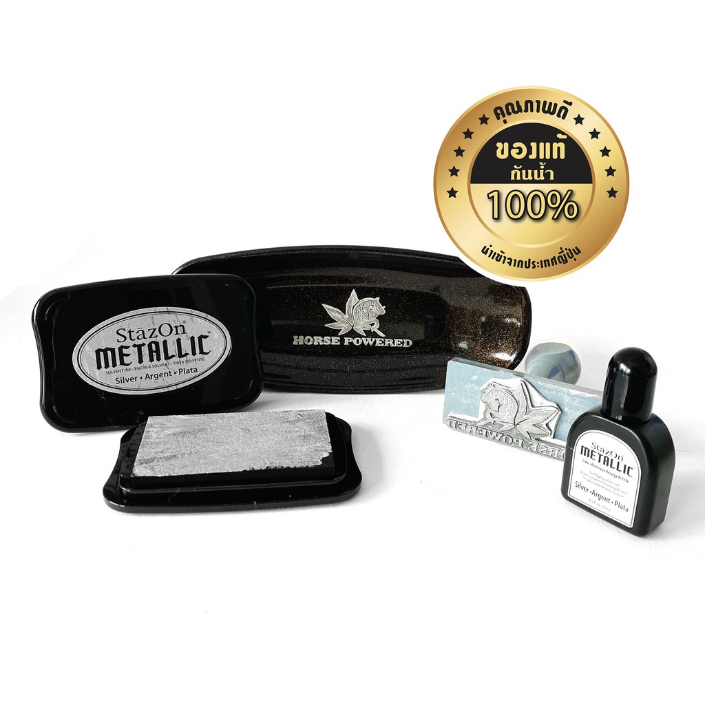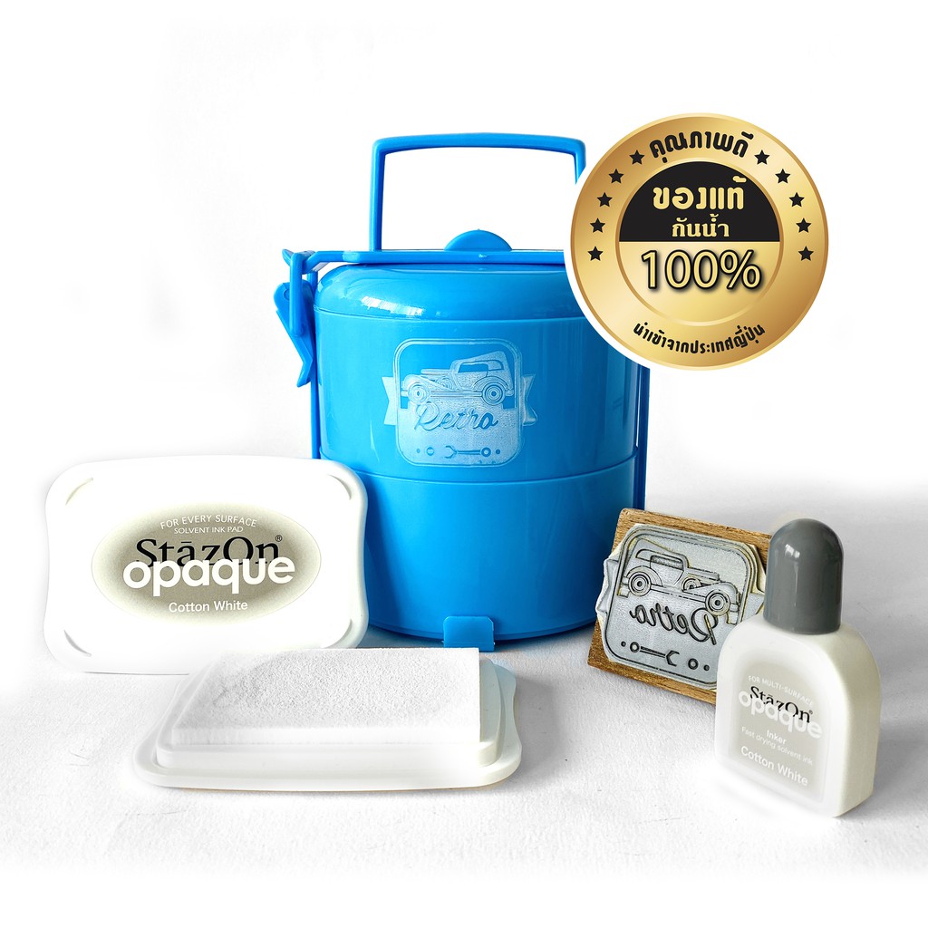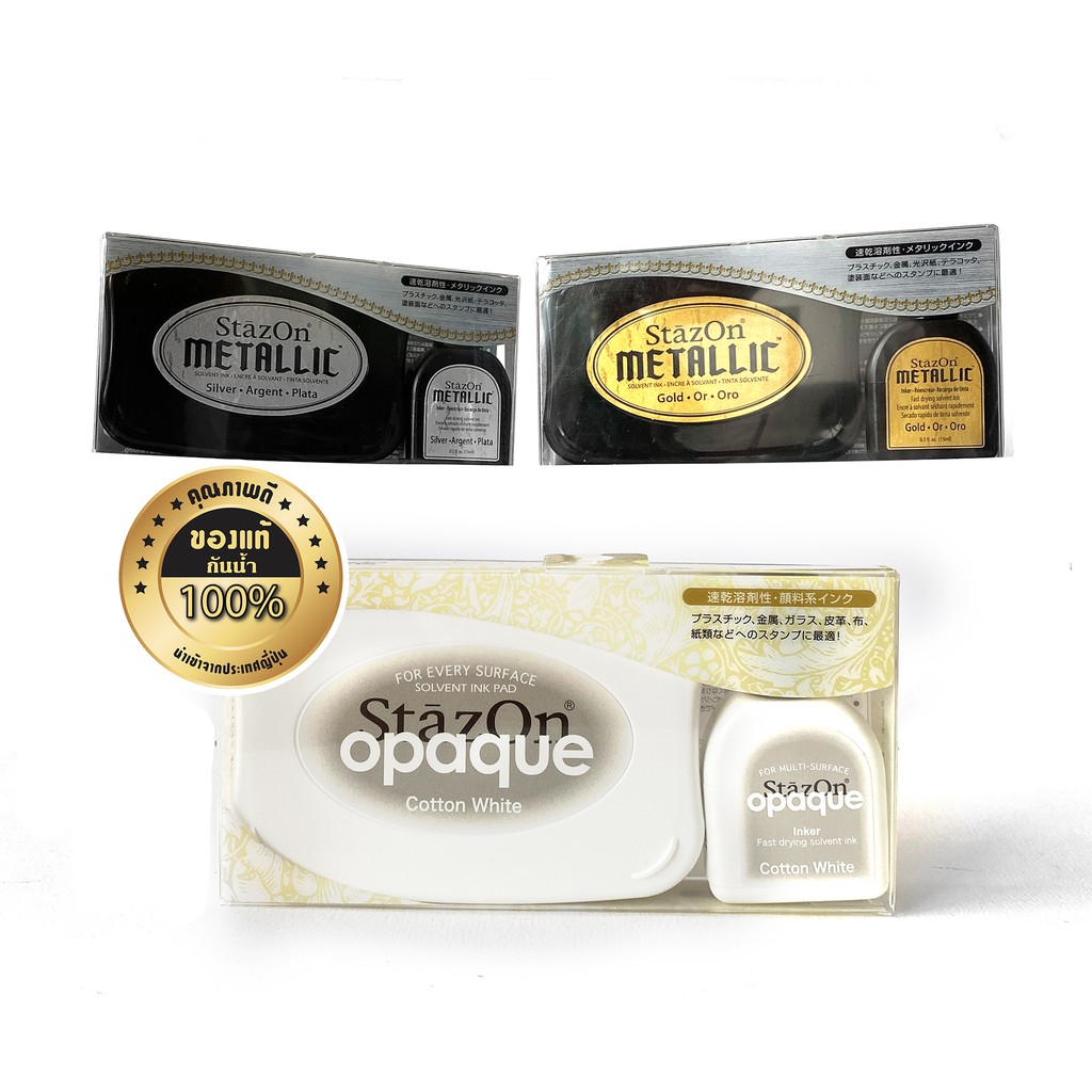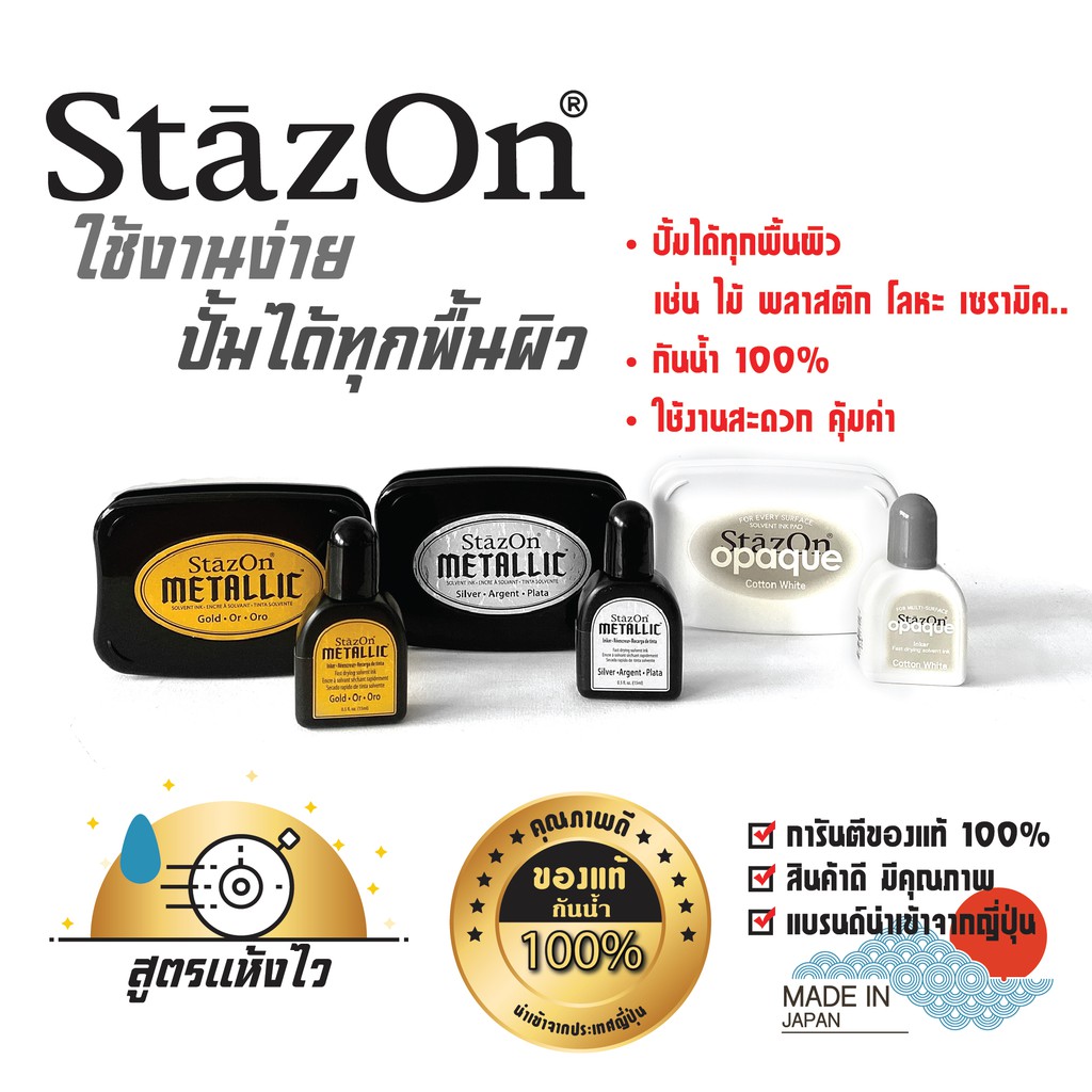 StazOn แท่นเปล่า + หมึกเติม 15มล. แท่นปั๊ม หมึกกันน้ำ ปั๊มพลาสติก,กล่อง,แก้ว,โลหะ, ผ้า, พลาสติก, ไม้
