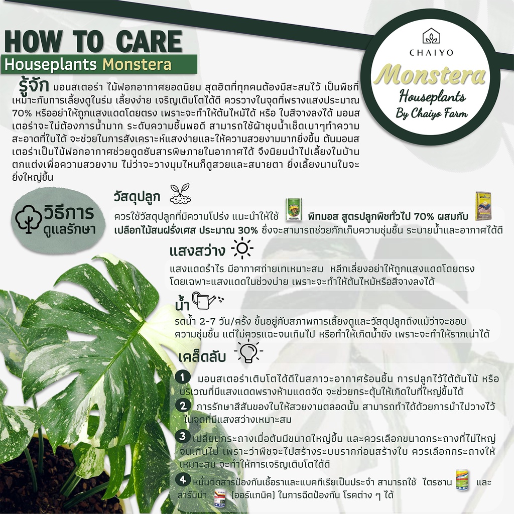 ต้นมอนส เตอร่า เดลิซิโอซ่า ไจแอนท์ (Monstera Deliciosa Monstera Giant) กระถาง 6 นิ้ว อายุ 1 ปีขึ้นไป