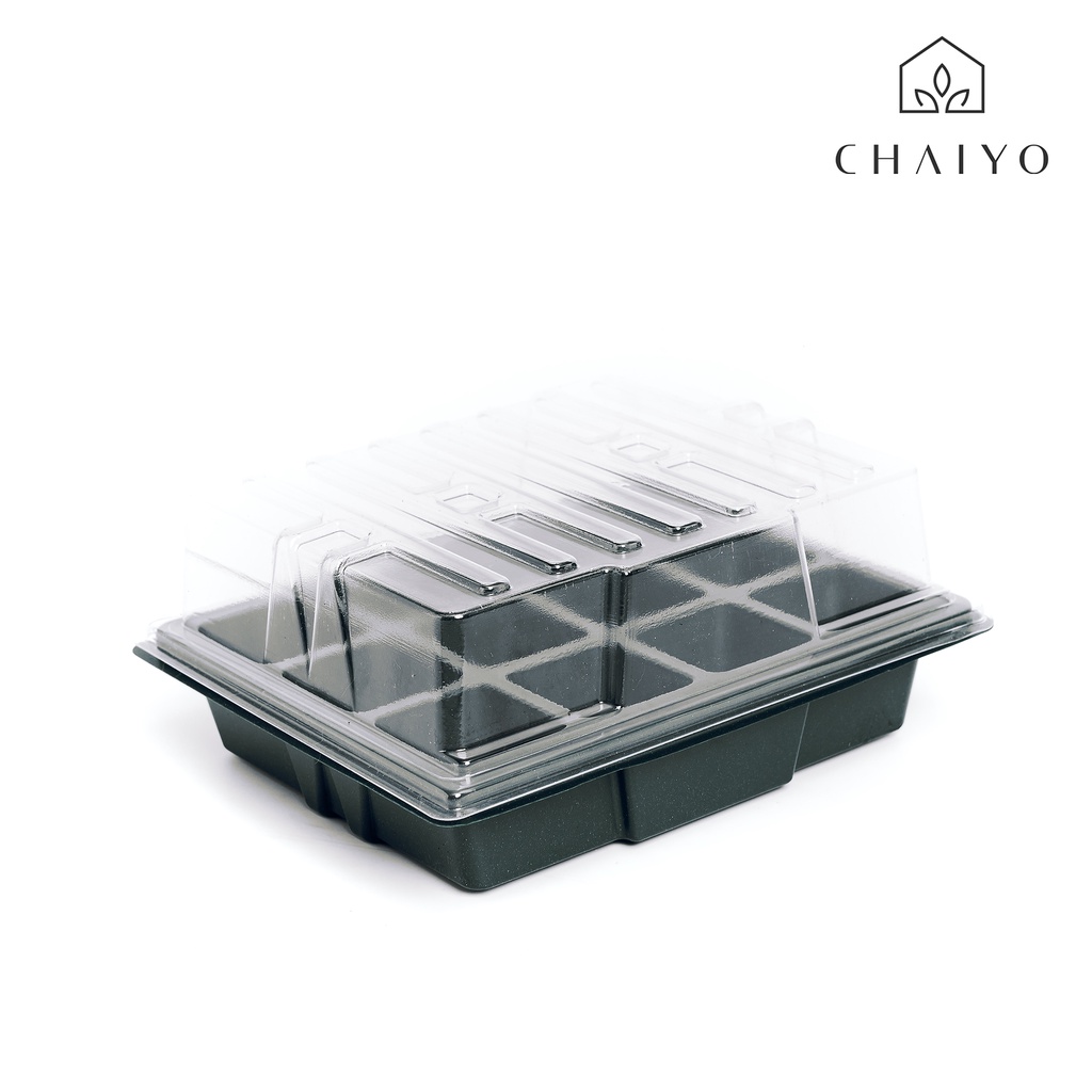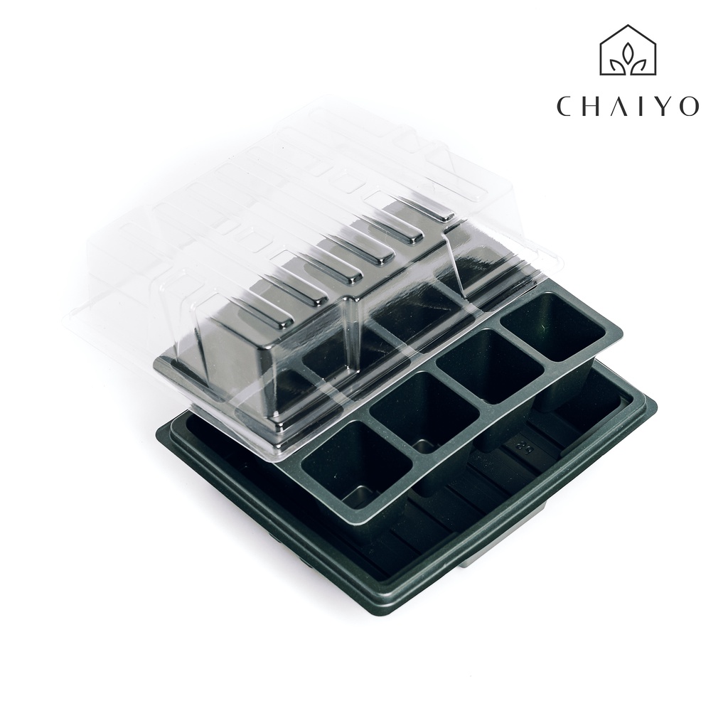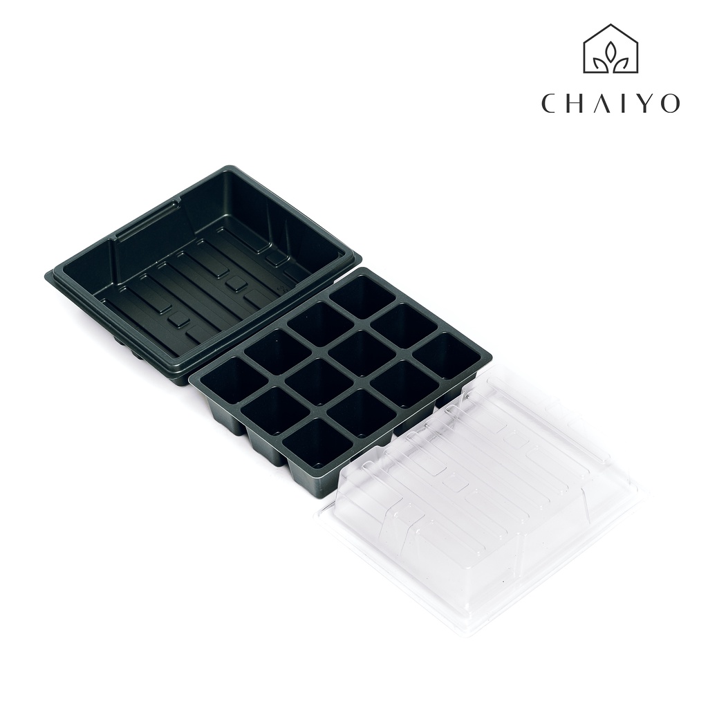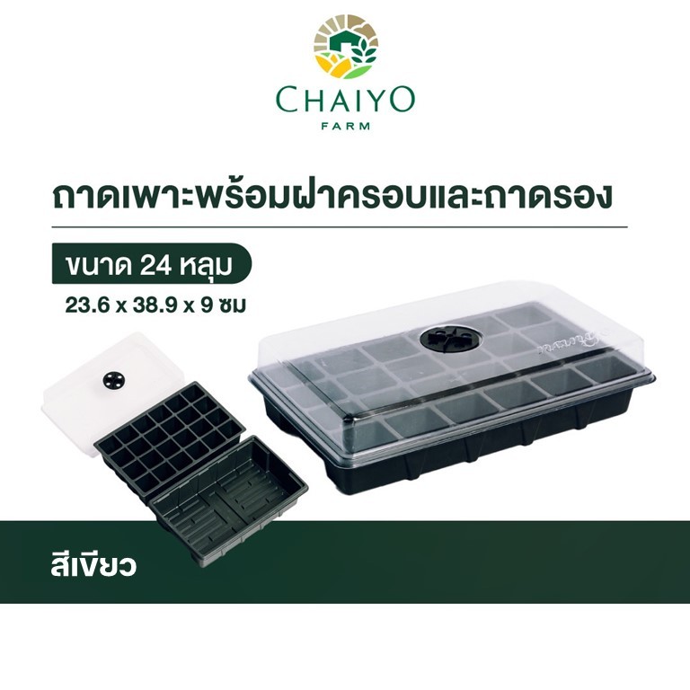ถาดเพาะพร้อมฝาครอบและถาดรอง ขนาด 12 และ 24 หลุม สีเขียว