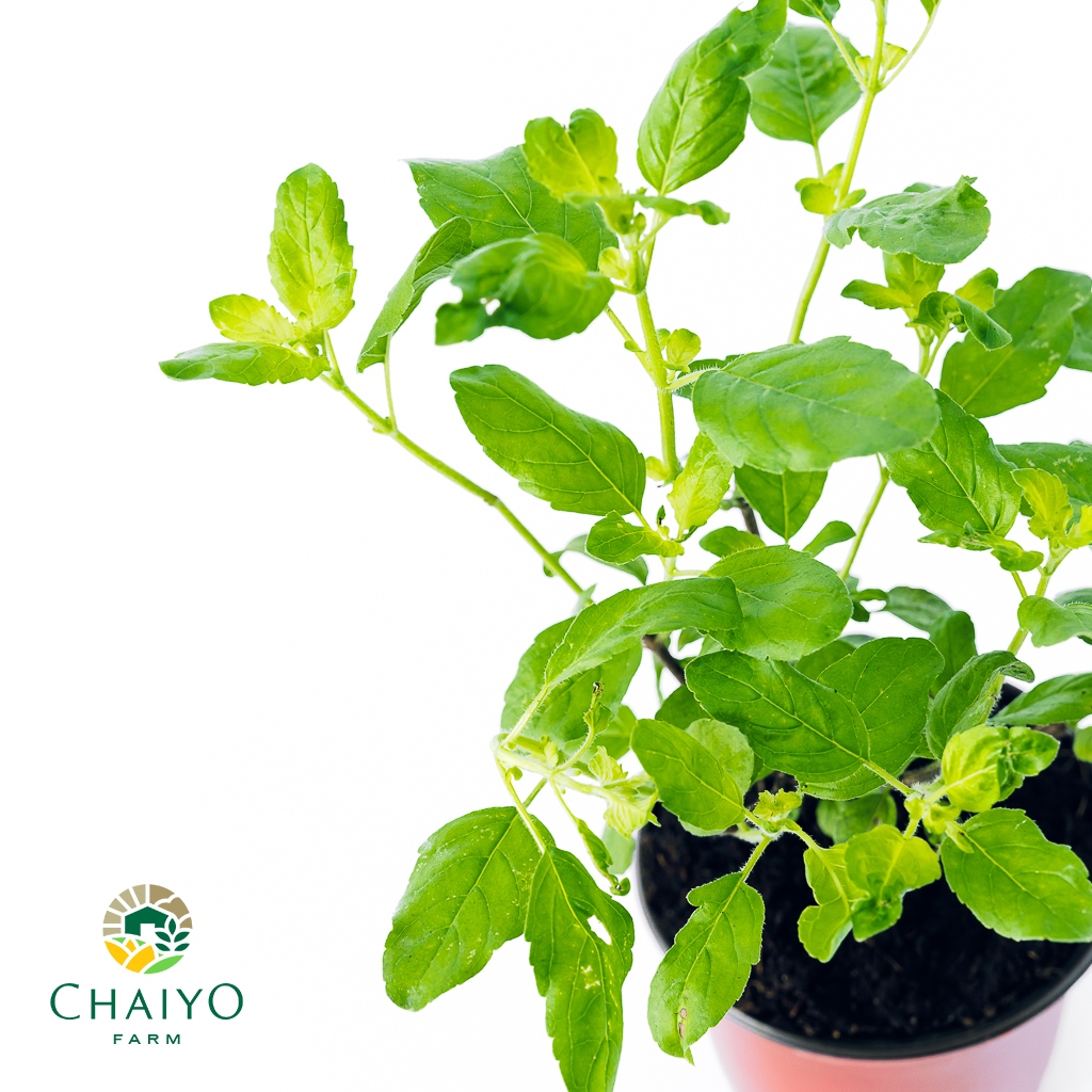 ต้นกะเพราแดง ต้นกะเพราเขียว และ ต้นโหระพาไทย ออร์แกนิค (รวมสมุนไพรไทย ออร์แกนิค 3 ชนิด) กระถาง 4 นิ้ว และ 6 นิ้ว