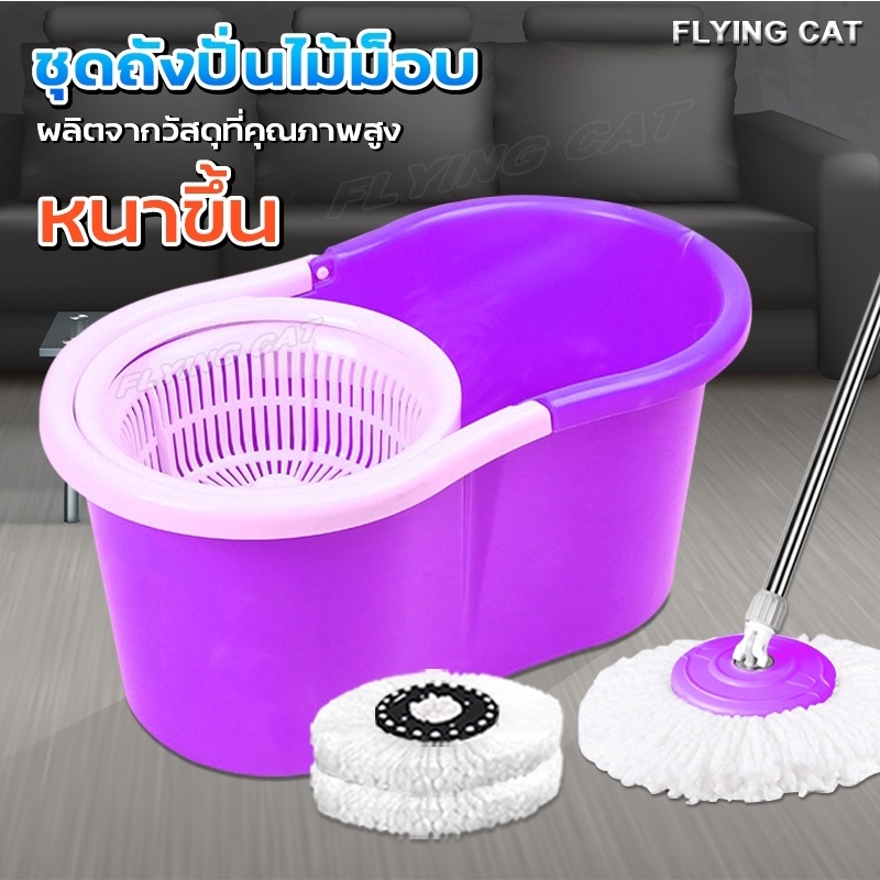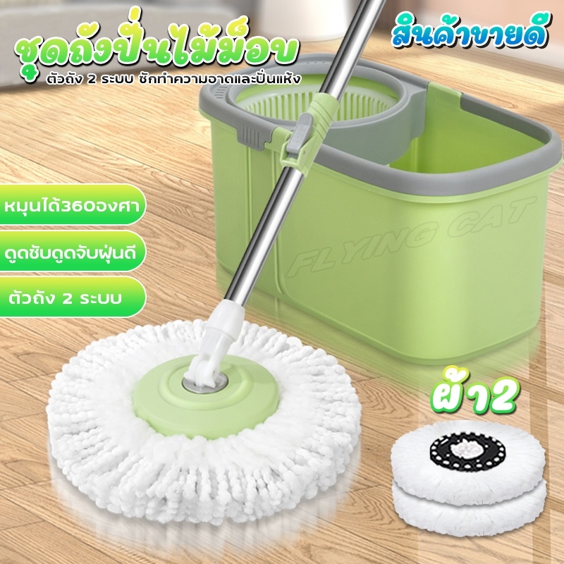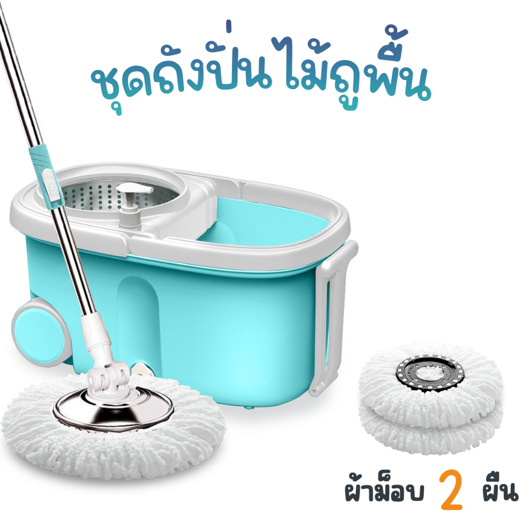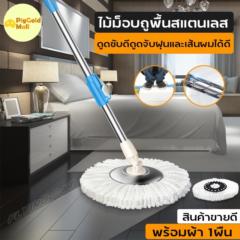 ถังปั่นไม้ถูพื้นSpinMopหัวสแตนเลส ถังปั่นสแตนเลสพร้อมไม้ม๊อบถูพื้นพร้อมผ้าม็อบ