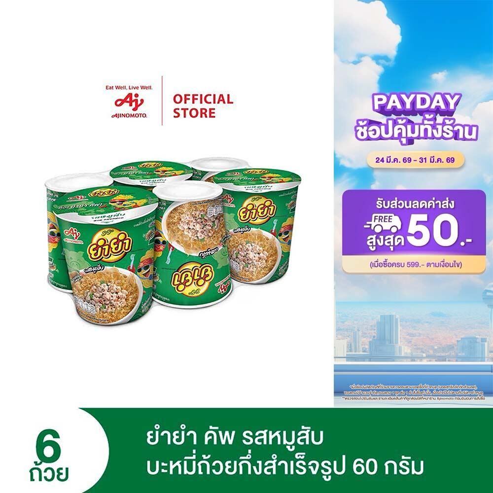 YumYum ยำยำคัพเต็มเต็ม รสหมูสับ บะหมี่ถ้วยกึ่งสำเร็จรูป 60 กรัม แพ็ก 6 ถ้วย