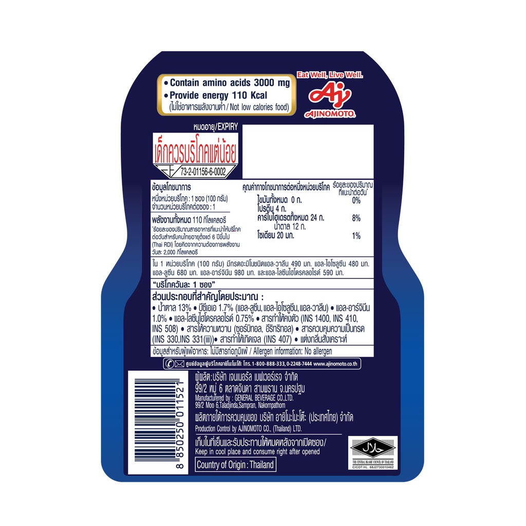 [ส่งฟรี] aminoVITAL อะมิโน ไวทัล เจลพลังงานผสมกรดอะมิโนพร้อมทาน 100 กรัม แพ็ก 24 ถุง
