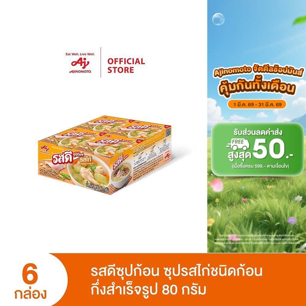 รสดีซุปก้อน รสไก่ 80 กรัม แพ็ก 6 กล่อง