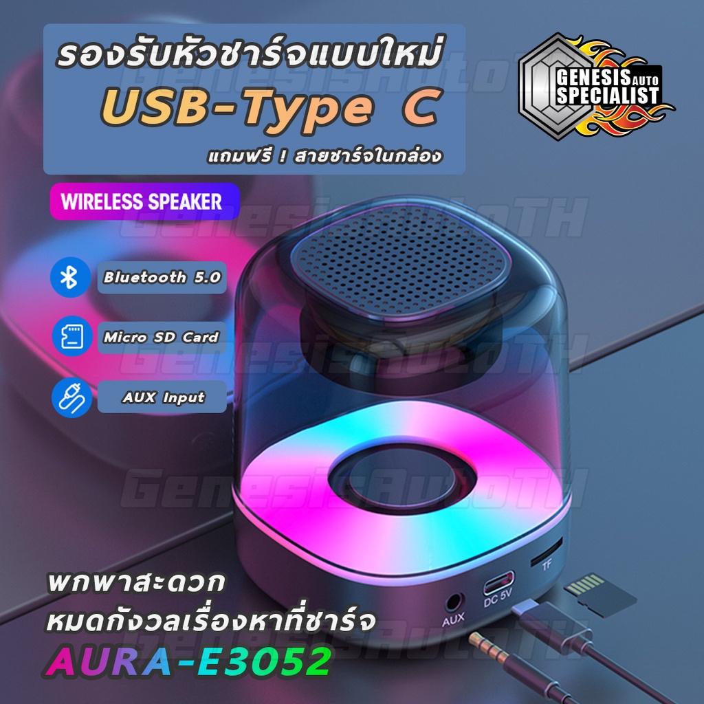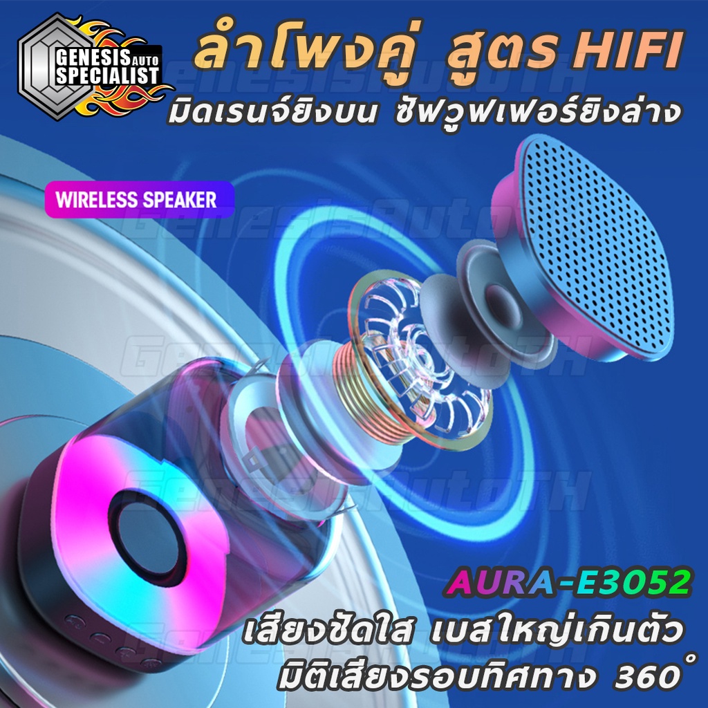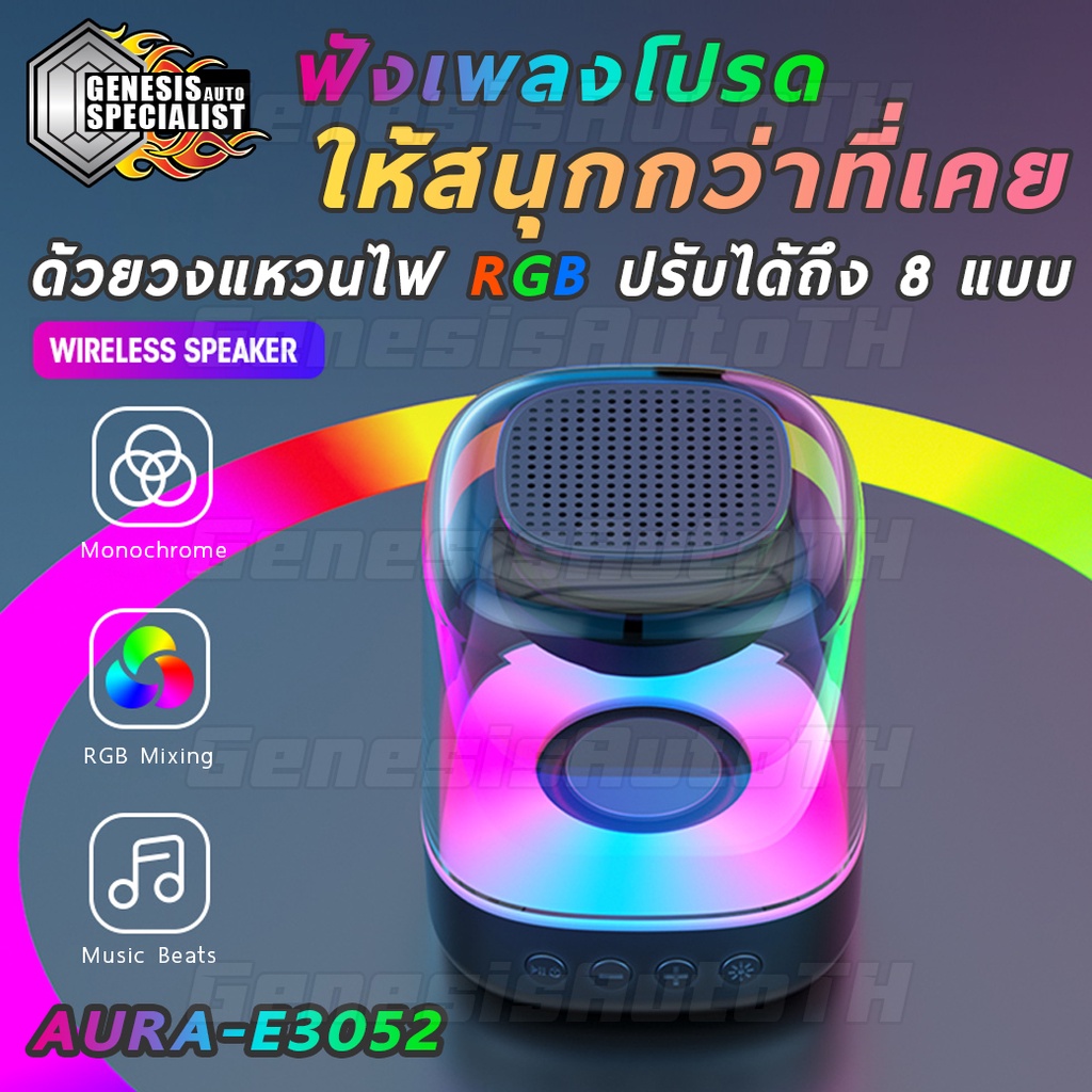 [ลูกค้าใหม่ 1 บาท] ลำโพงบลูทูธ AURA-E3052 เสียงดี เบสแน่น ไฟRGB ปรับได้ เต้นตามเพลง Bluetooth Wireless RGB Speaker