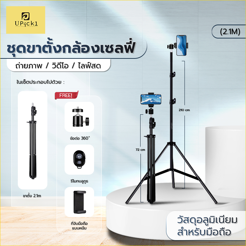 UPick1 ขาตั้งกล้องมือถือ เซลฟี่ 70-210cm +รีโมทบลูทูธ+ที่จับมือถือ หรือ แท็บเล็ต / วัสดุสองแบบ