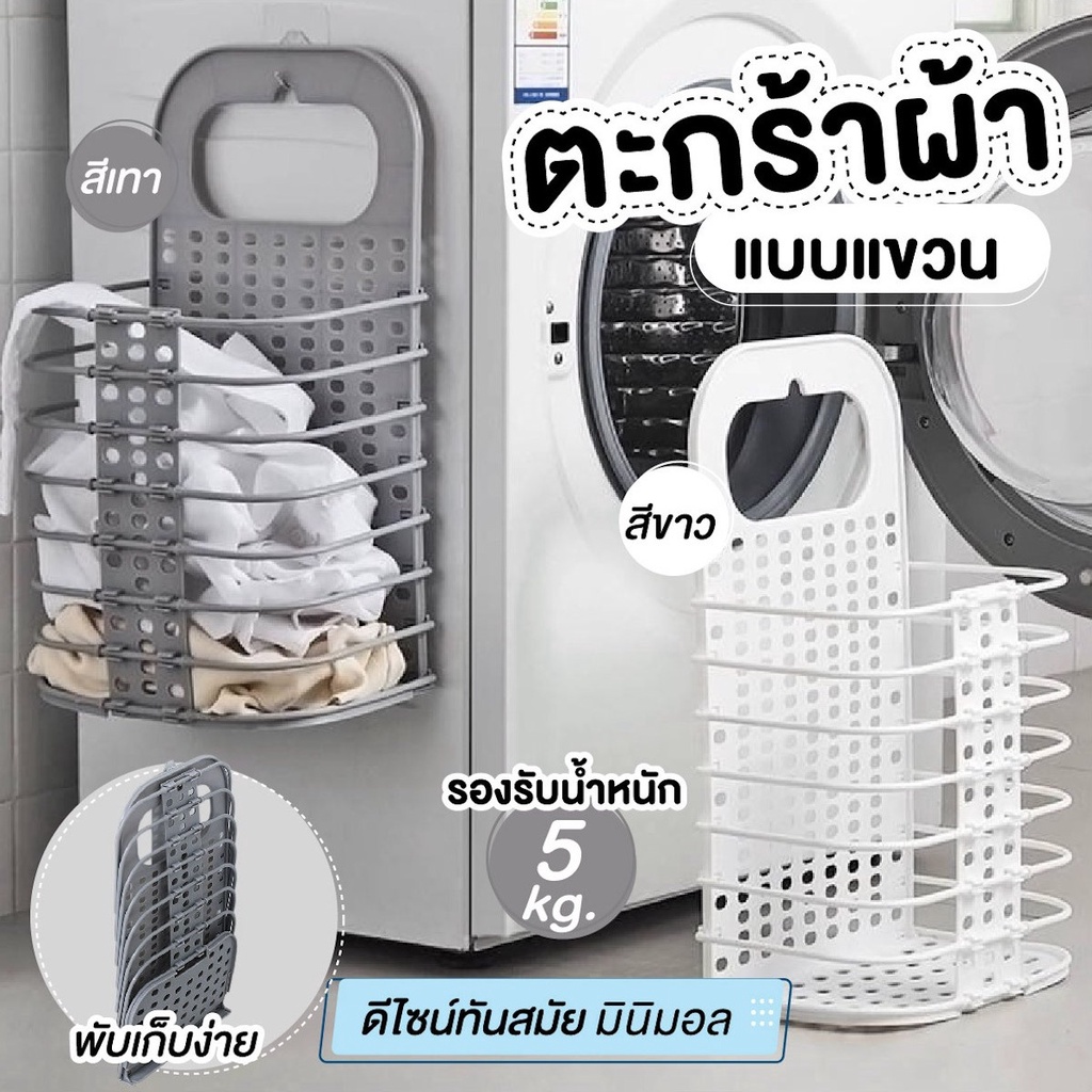 ✅ถูกที่สุด✅ตะกร้าผ้า พับเก็บได้ ตะกร้าใส่ผ้าแบบแขวนไม่ต้องเจาะผนัง ตะกร้าพับได้ รับน้ำหนักได้ 5 kg.