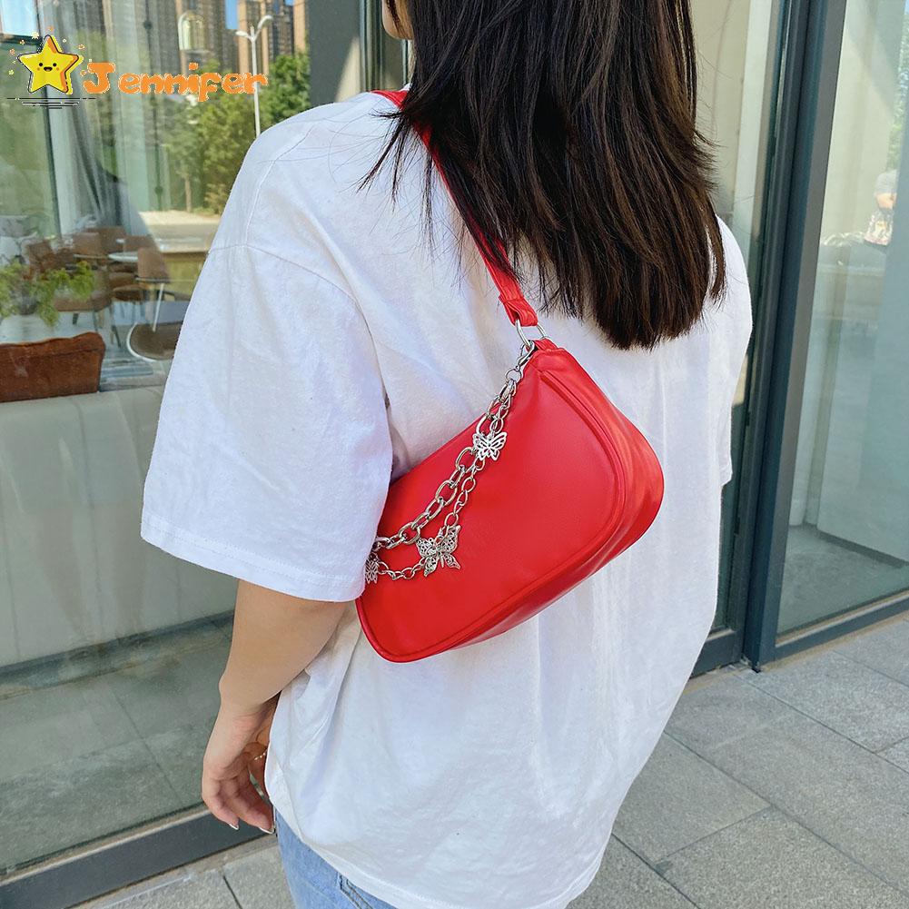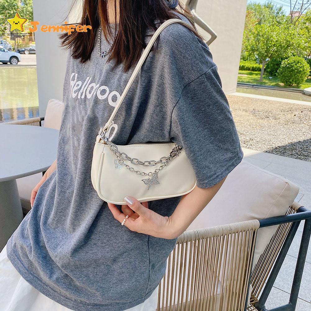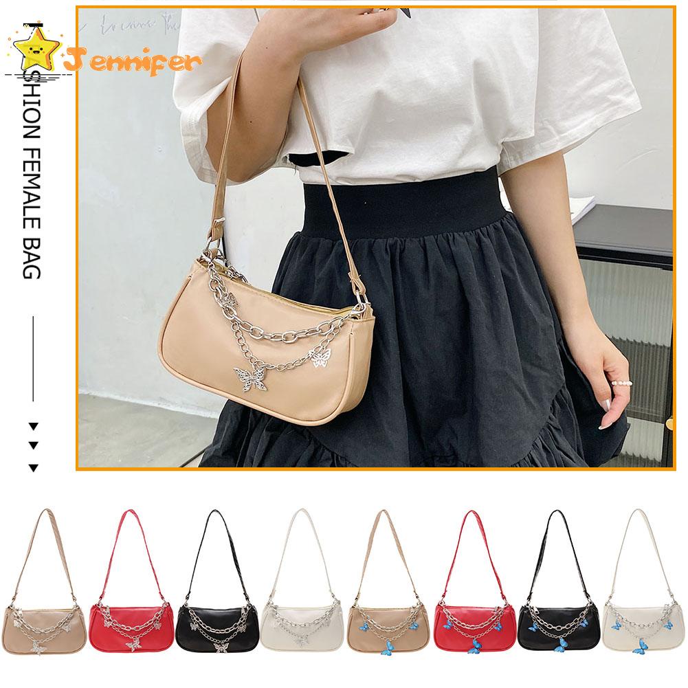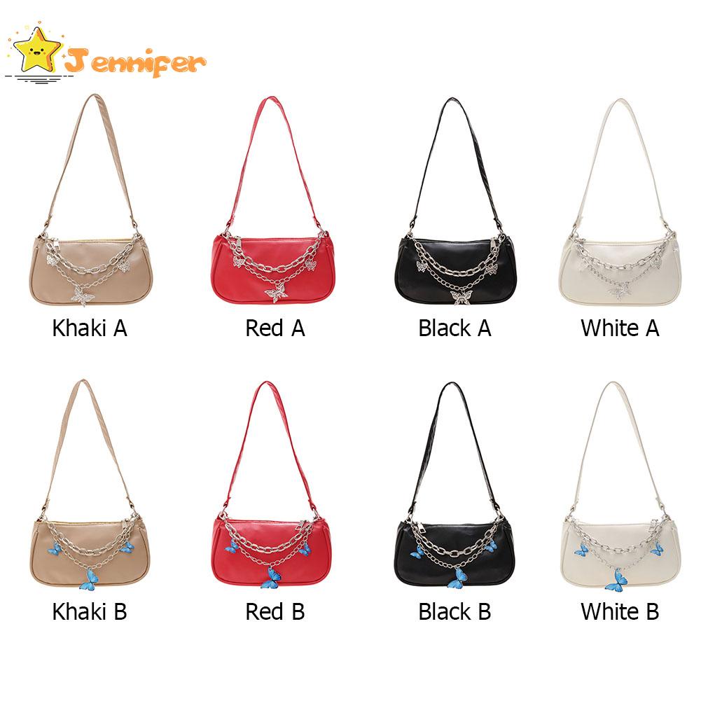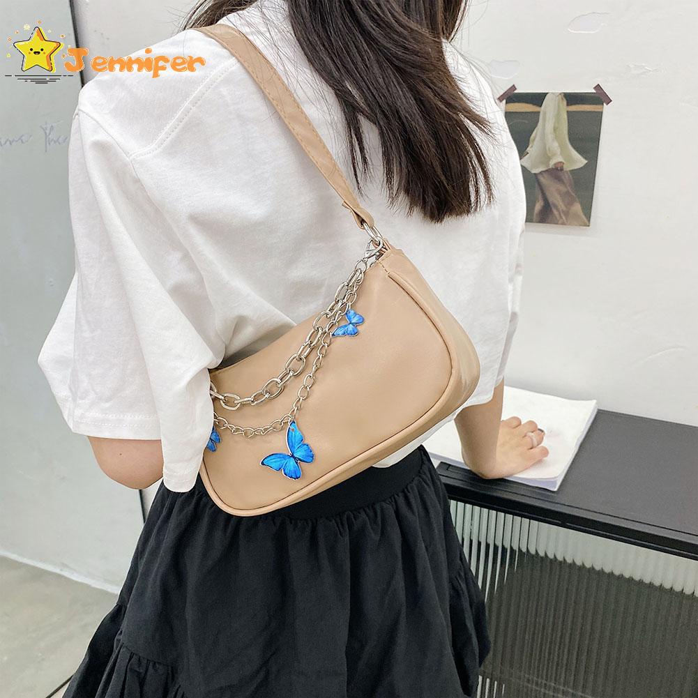 Jennifer ❥ กระเป๋าถือ กระเป๋าสตางค์ หนัง PU ใบเล็ก แต่งสายโซ่คู่ ลายผีเสื้อ สไตล์วินเทจ สําหรับผู้หญิง ✿