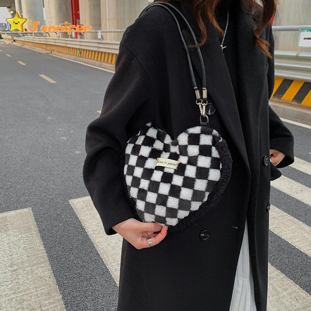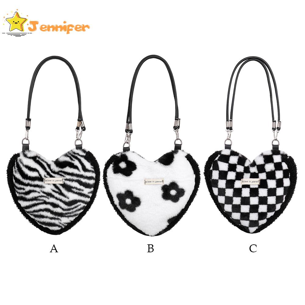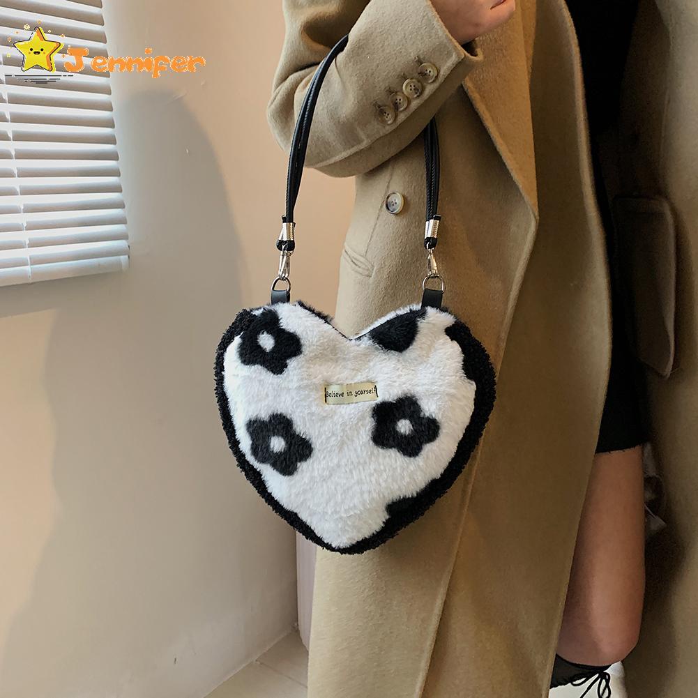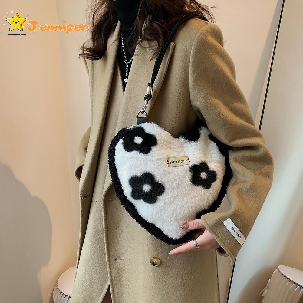 Jennifer ❥ กระเป๋าถือ ประดับขนนุ่ม รูปหัวใจ ขนาดเล็ก ให้ความอบอุ่น แฟชั่นฤดูหนาว สําหรับผู้หญิง ✿
