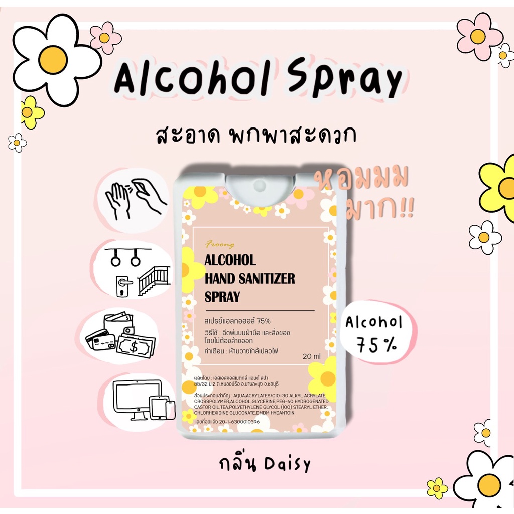 สเปรย์แอลกอฮอล์ กลิ่นหอม แบบพกพา 20 ml. Alcohol hand spray perfume scent 20 ml.
