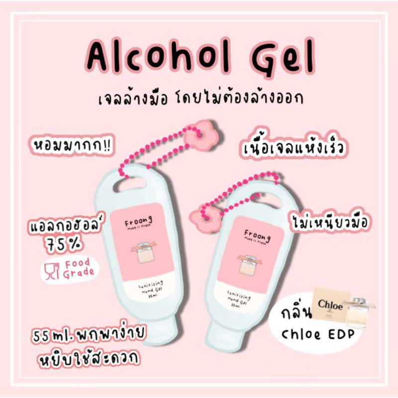 เจลล้างมืออนามัย แอลกอฮอล์ 75% กลิ่นน้ำหอม ขวดพกพา 55 มล. Hand Sanitizer Gel Perfumes scent 55ml.