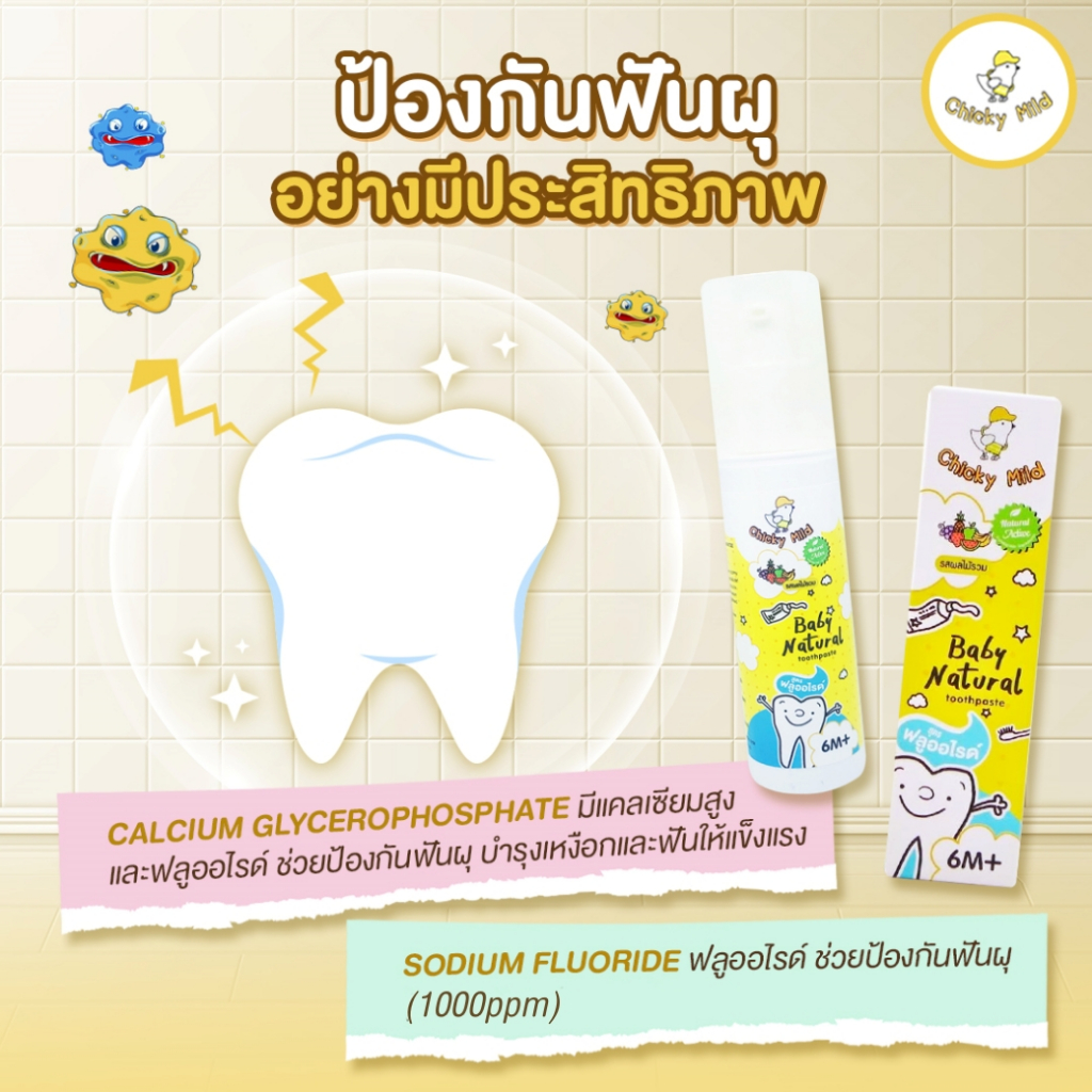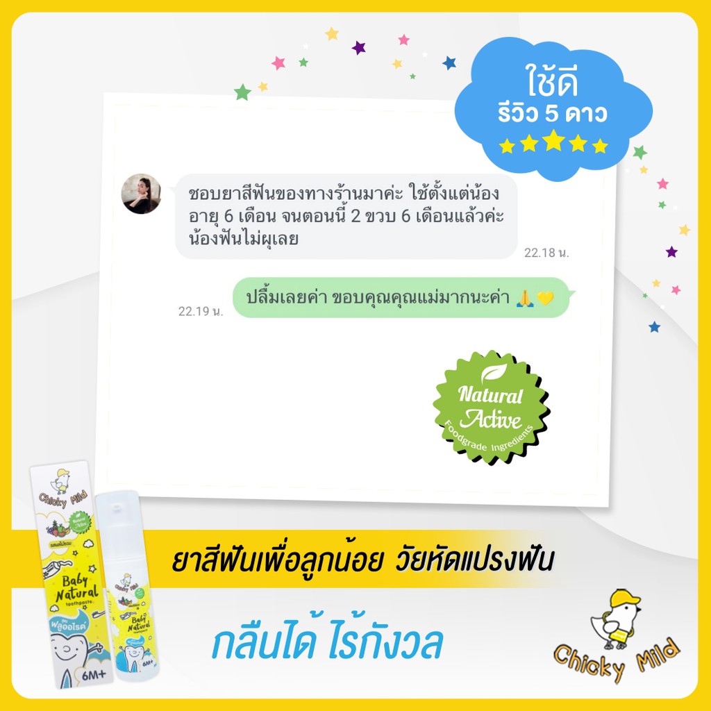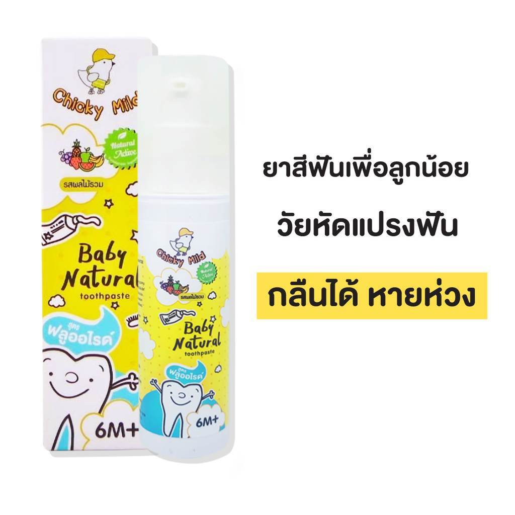 ยาสีฟันเด็ก สูตรออแกนิค ยาสีฟันกลืนได้ Chicky Mild ฟลูออไรด์ 1000ppm กลิ่นหอม แปรงง่าย ป้องกันฟันผุ