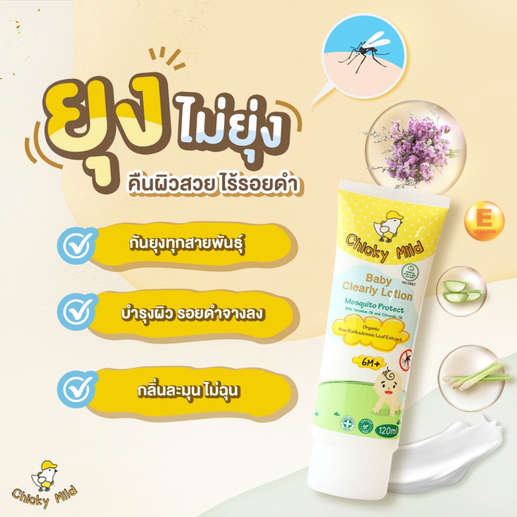 [โปร 2 หลอดใหญ่] Chicky Mild โลชั่นกันยุงออแกนิค สูตรบำรุง ลดขาลาย กันยุงกัด ทาหน้าได้ ไม่ฉุน