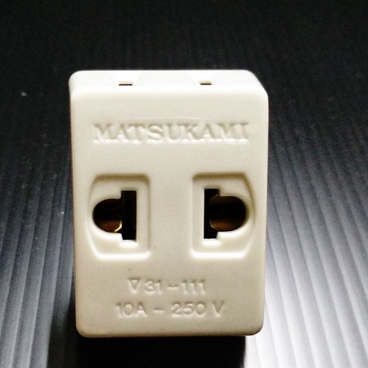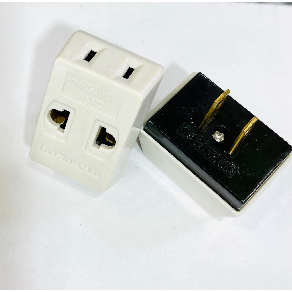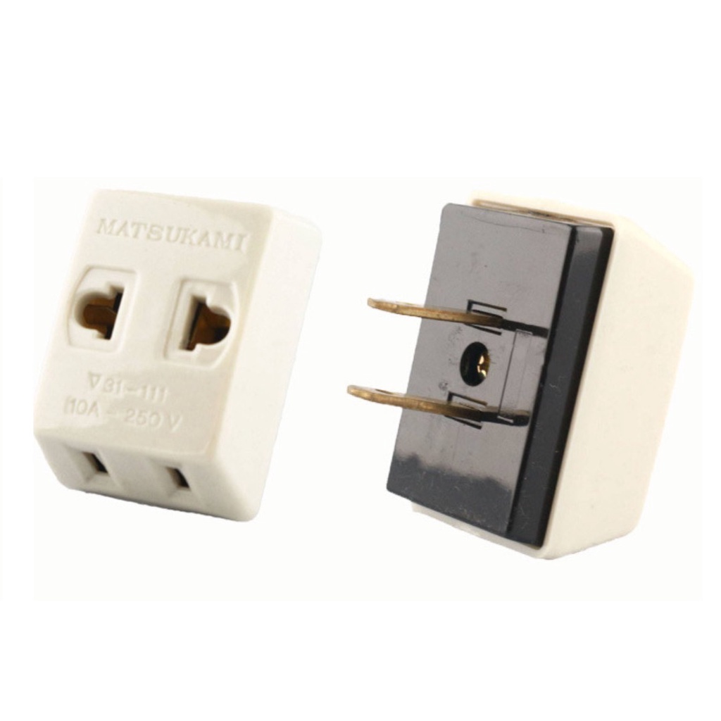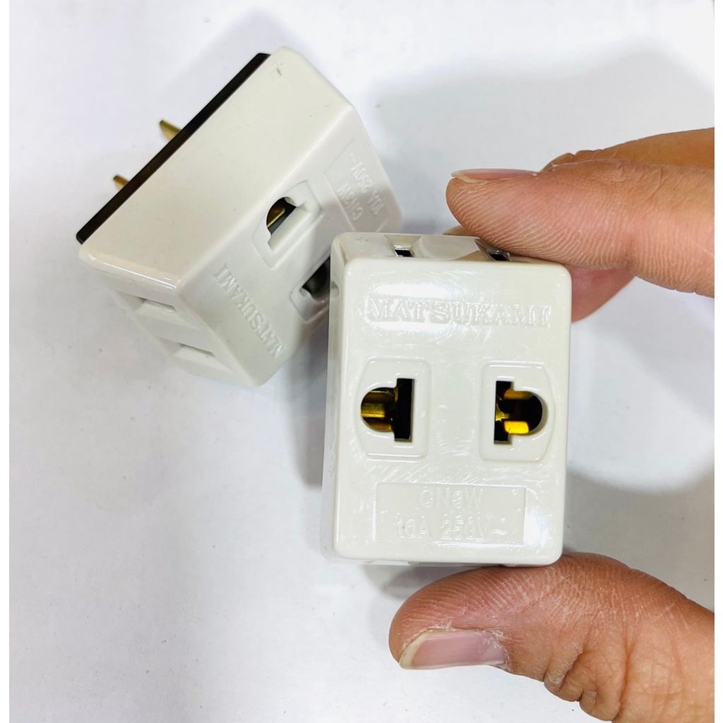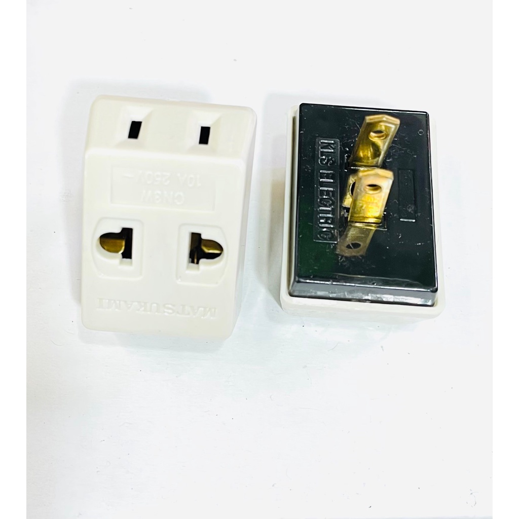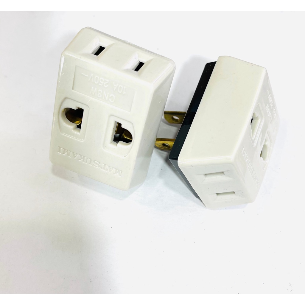 ปลั๊กสามตา ต่อ 2 ขาแบน หัวต่อพ่วงขาแบน ทองเหลือง สีครีม Matsukami 10A 250V