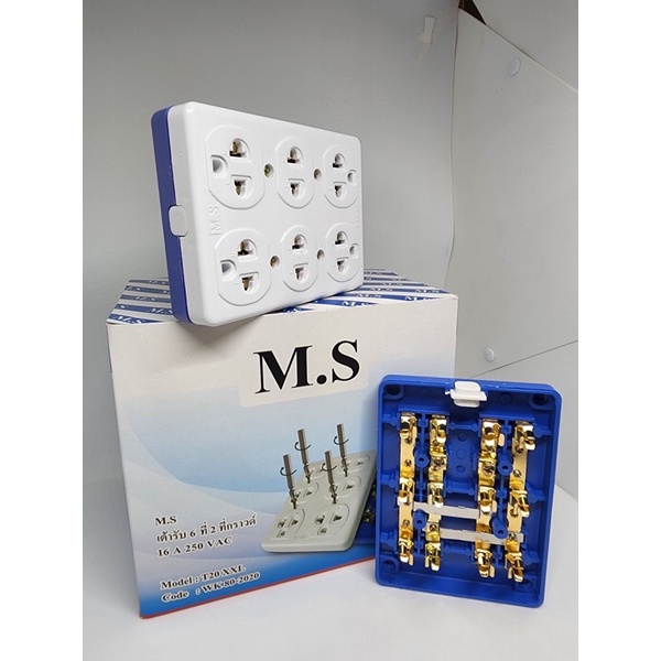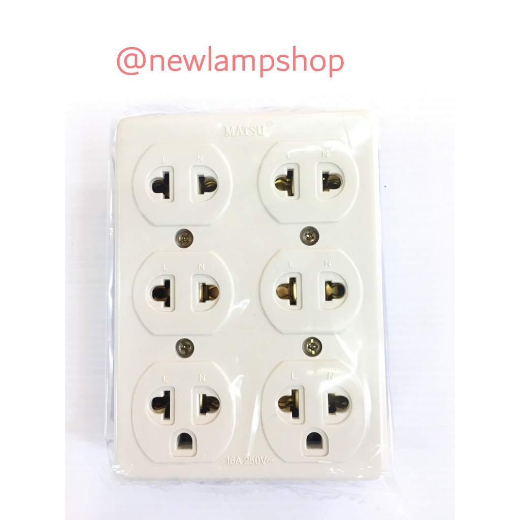 [เก็บโค้ดส่งฟรีหน้าร้าน] ปลั๊ก/เต้ารับ 6 ที่ 2 ที่กราวด์ ทูโทน ยี่ห้อ Matsu