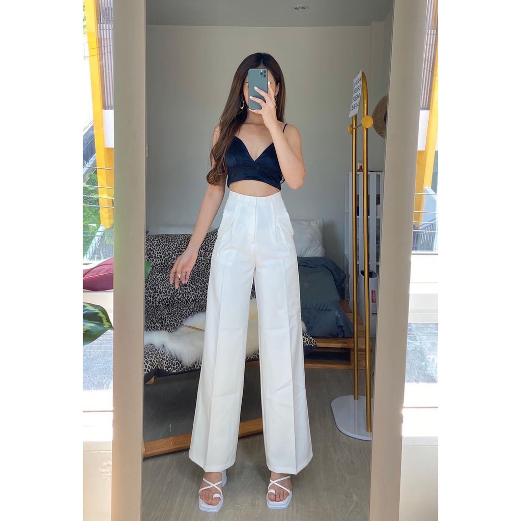 🔥🔥ลดล้างสต๊อค🔥🔥 G33 กางเกงเอวสูง ทรงจีบ ตะขอหน้า ผ้าเปเป้ ใส่ทำงาน ขากระบอกใหญ่ รับประกันคุณภาพ ไม่พอใจคืนเงิน